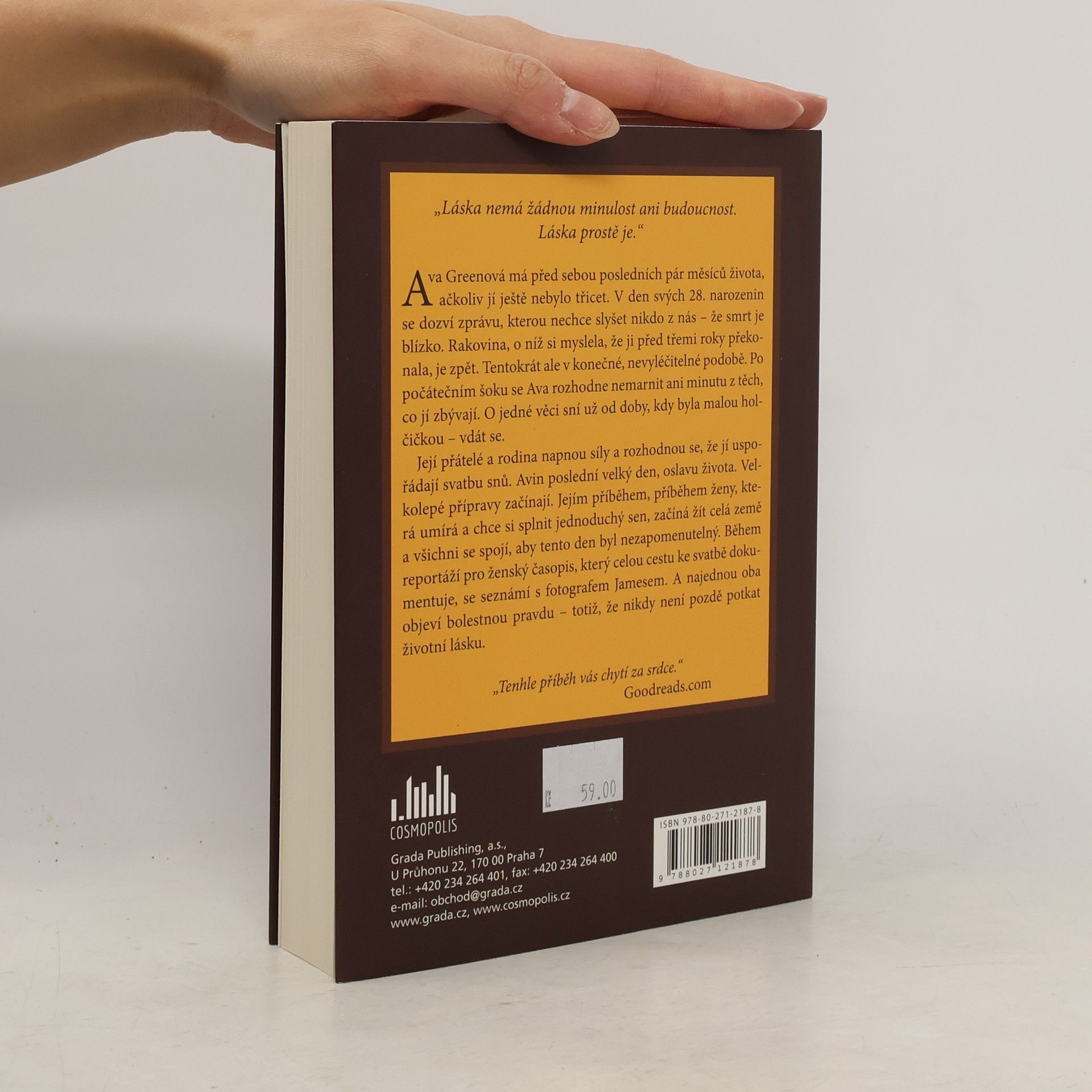 Ava Greenová má před sebou posledních pár měsíců života, ačkoliv jí ještě nebylo třicet. V den svých 28. narozenin se dozví zprávu, kterou nechce slyšet nikdo z nás – že smrt je blízko. Rakovina, o níž si myslela, že ji před třemi roky překonala, je zpět. Tentokrát ale v konečné, nevyléčitelné podobě. Po počátečním šoku se Ava rozhodne nemarnit ani minutu z těch, co jí zbývají. O jedné věci sní už od doby, kdy byla malou holčičkou – vdát se. Její přátelé a rodina napnou síly a rozhodnou se, že jí uspořádají svatbu snů. Její poslední velký den, oslavu života. Velkolepé přípravy začínají. Jejím příběhem, příběhem ženy, která umírá a chce si splnit jednoduchý sen, začíná žít celá země a všichni se spojí, aby její poslední velký den byl nezapomenutelný. Během reportáží pro ženský časopis, který celou cestu ke svatbě dokumentuje, se seznámí s fotografem Jamesem. A najednou oba objeví bolestnou pravdu – totiž, že nikdy není pozdě potkat životní lásku.