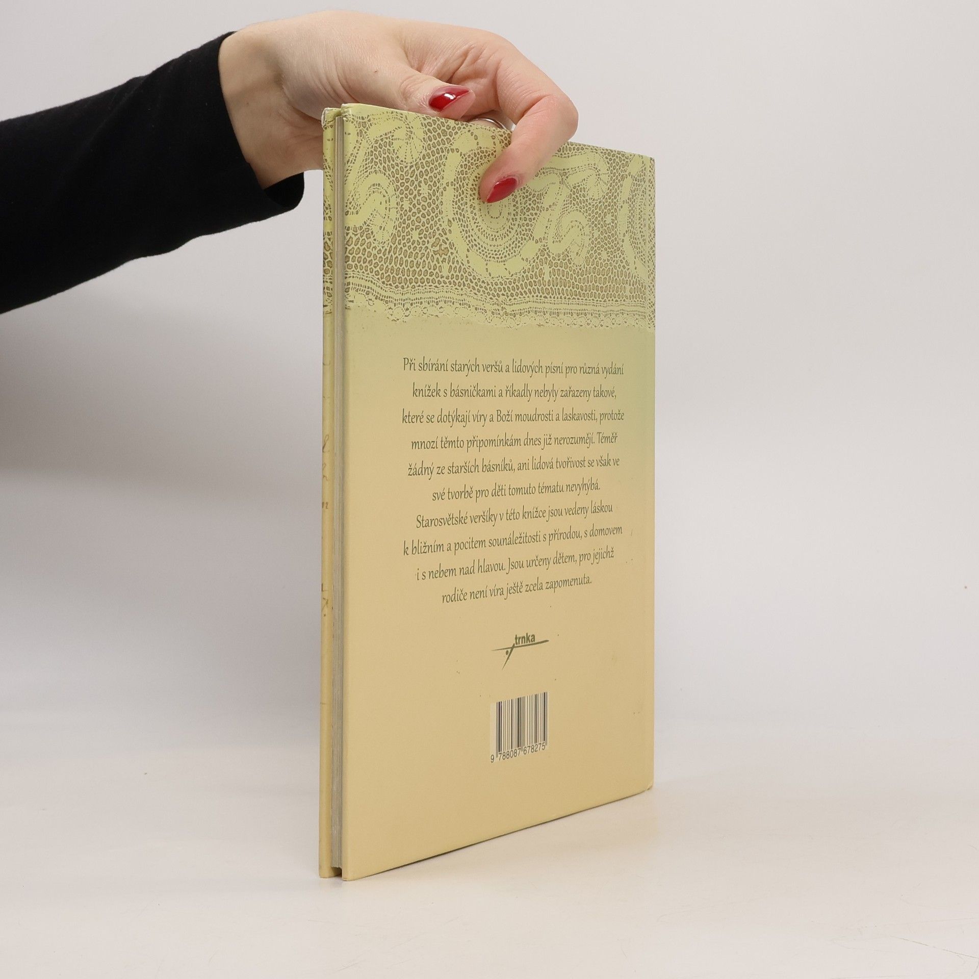 Při sbírání starých veršů, tradic, a lidových písní pro různá vydání básniček a říkadel zůstaly opomenuty, takové, které se dotýkají víry a Boží moudrosti a laskavosti. Téměř žádný ze starších básníků, ani lidová tvořivost se ve své tvorbě pro děti tomuto tématu nevyhýbá. Veršíky jsou vedeny láskou k bližním a pocitem sounáležitosti s přírodou i s nebem nad hlavou. Nechť tato knížka provází děti, pro jejichž rodiče není víra ještě zcela zapomenuta.