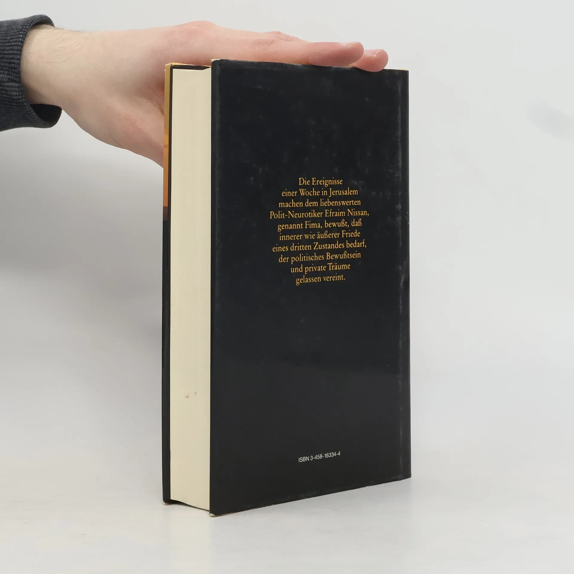 Die Ereignisse einer Woche in Jerusalem machen dem liebenswerten Polit-Neurotiker Efraim Nissan, genannt Firma, bewußt, dass innerer wie äußerer Friede eines dritten Zustandes bedarf, der politisches Bewusstsein und private Träume gelassen vereint.