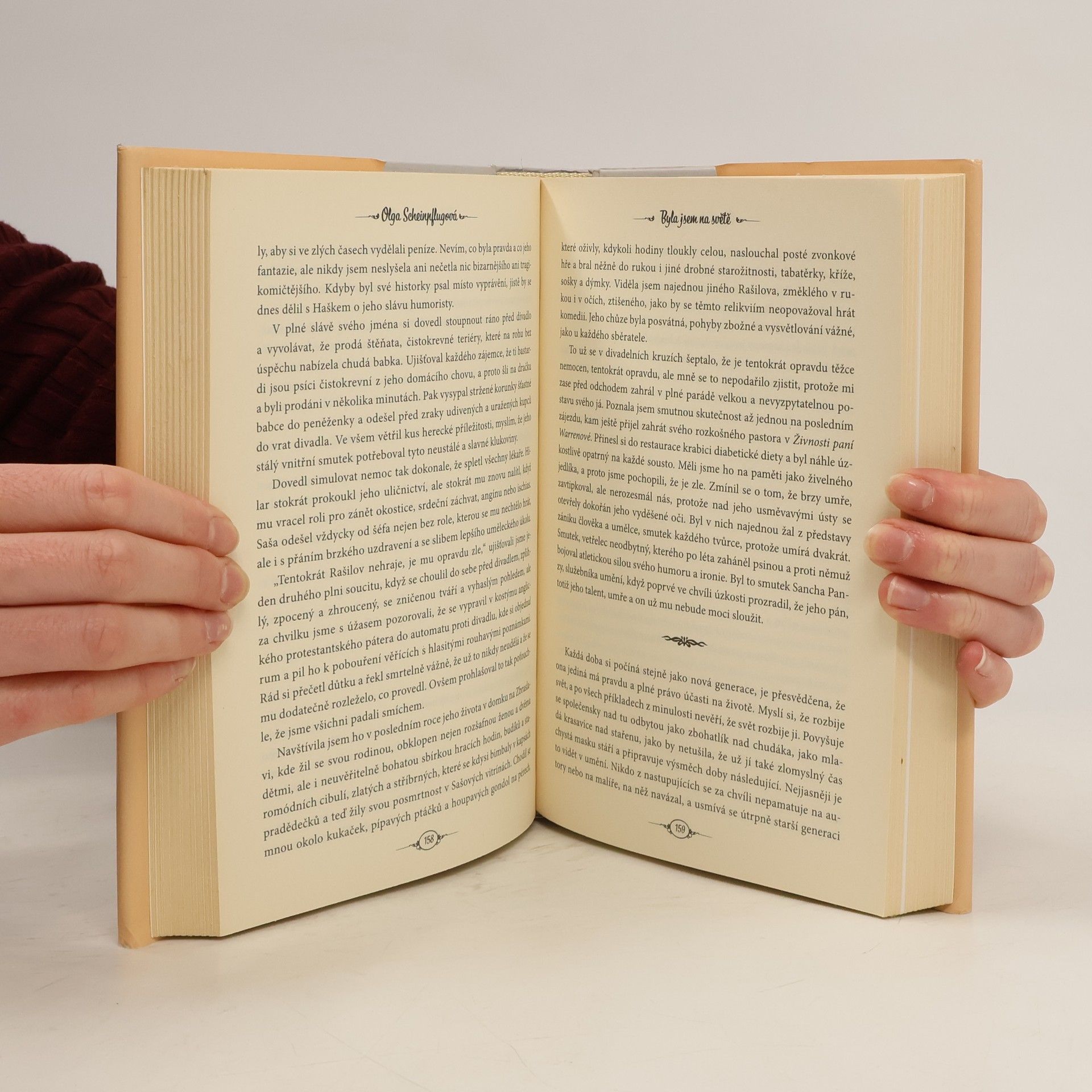 Olga Scheinpflugová (1902–1968) ve svých osobitě komponovaných pamětech vzpomíná na herecké a režisérské osobnosti českého divadla. S většinou z nich ji nepojily jen profesní vazby, ale také pouta přátelská. Do těchto vzpomínek jsou pak vetknuty i úvahy o smyslu a poslání herecké práce, rozjímání o vztahu s Karlem Čapkem, zážitky z druhé světové války i z let následujících.