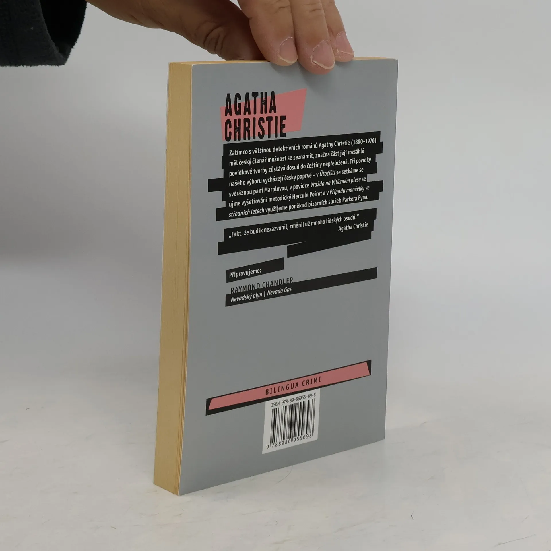 Zatímco s většinou detektivních románů Agathy Christie měl český čtenář možnost se seznámit, značná část její rozsáhlé povídkové tvorby zůstává dosud do češtiny nepřeložená. Tři povídky našeho souboru vycházejí česky poprvé – v Útočišti se setkáme se svéráznou paní Marplovou, v povídce Vražda na Vítězném plese se ujme vyšetřování metodický Hercule Poirot a v Případu manželky ve středních letech využijeme poněkud bizarních služeb Parkera Pyna. Z angličtiny přeložili Jarka Stuchlíková, Jiřina Zachová a Lukáš Houdek. Bilingvní česko-anglické vydání.