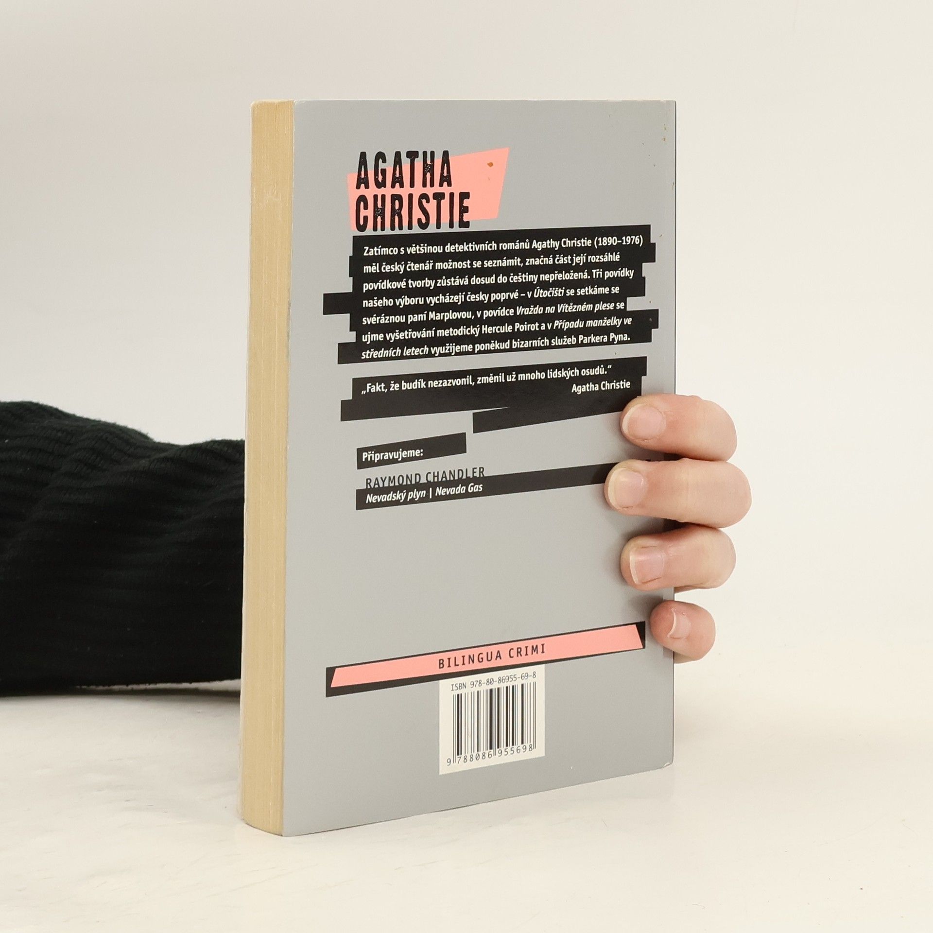 Zatímco s většinou detektivních románů Agathy Christie měl český čtenář možnost se seznámit, značná část její rozsáhlé povídkové tvorby zůstává dosud do češtiny nepřeložená. Tři povídky našeho souboru vycházejí česky poprvé – v Útočišti se setkáme se svéráznou paní Marplovou, v povídce Vražda na Vítězném plese se ujme vyšetřování metodický Hercule Poirot a v Případu manželky ve středních letech využijeme poněkud bizarních služeb Parkera Pyna. Z angličtiny přeložili Jarka Stuchlíková, Jiřina Zachová a Lukáš Houdek. Bilingvní česko-anglické vydání.