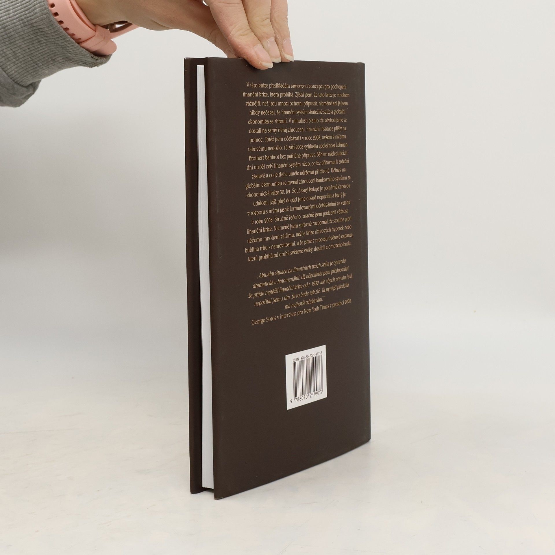 Úvěrová krize 2008 a co dál Jsme uprostřed nejhorší finanční krize od 30. let 20. století. V určitých směrech připomíná jiné krize, které vznikly v posledních pětadvaceti letech, je zde však výrazný rozdíl: stávající krize představuje konec doby úvěrové expanze založené na dolaru jako na mezinárodní rezervní měně. Periodicky se opakující krize byly součástí většího konjunkturního cyklu; nynější krize je vrcholem období vzestupu, které trvalo více než posledních dvacet pět let. Abychom porozuměli tomu, co se děje, potřebujeme nové paradigma. Dosud převládající model, který říká, že finanční trhy směřují k rovnováze, je nesprávný a zároveň zavádějící; naše nynější problémy mohou být z větší části připsány skutečnosti, že mezinárodní finanční systém byl rozvinut na základě tohoto modelu. Nové paradigma, které navrhuji, není omezeno na finanční trhy. Týká se vztahu myšlení a skutečnosti a konstatuje, že mylné představy a chybné výklady hrají velkou roli v určování směru dějin.