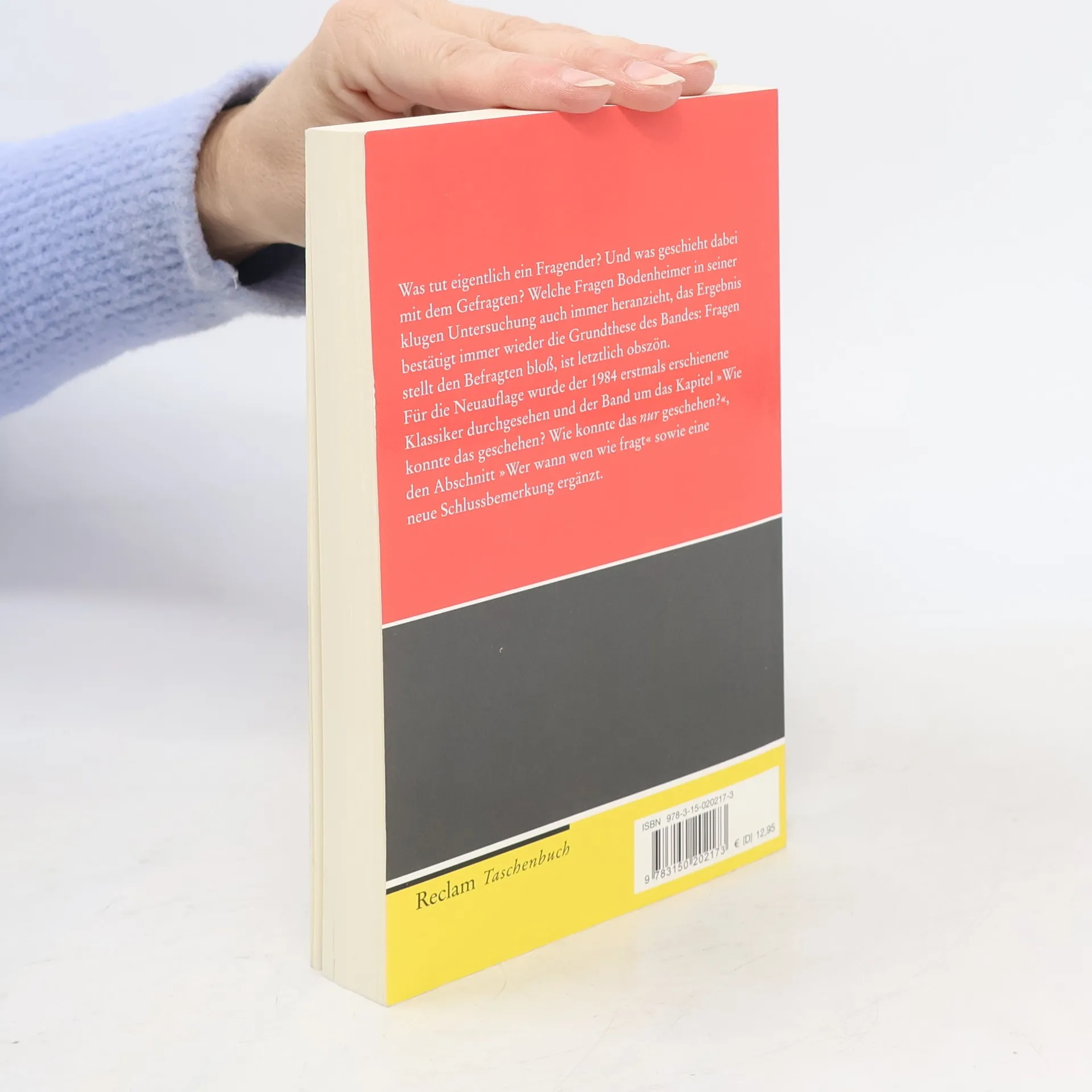 Was tut eigentlich ein Fragender? Und was geschieht dabei mit dem Gefragten? Welche Fragen Bodenheimer in seiner klugen Untersuchung auch immer heranzieht – von so alltäglichen wie »Wie geht es Dir?« über »Liebst Du mich?« bis zu so grundlegenden wie »Existiert Gott?« – das Ergebnis bestätigt immer wieder die Grundthese des Bandes: Fragen stellt den Befragten bloß, ist letztlich obszön. Für diese Neuauflage wurde der gesamte Text des 1984 erschienenen Klassikers komplett durchgesehen und der Band um das Kapitel »Wie konnte das geschehen? Wie konnte das ›nur‹ geschehen?« und den Abschnitt »Wer wann wie wen fragt« ergänzt.