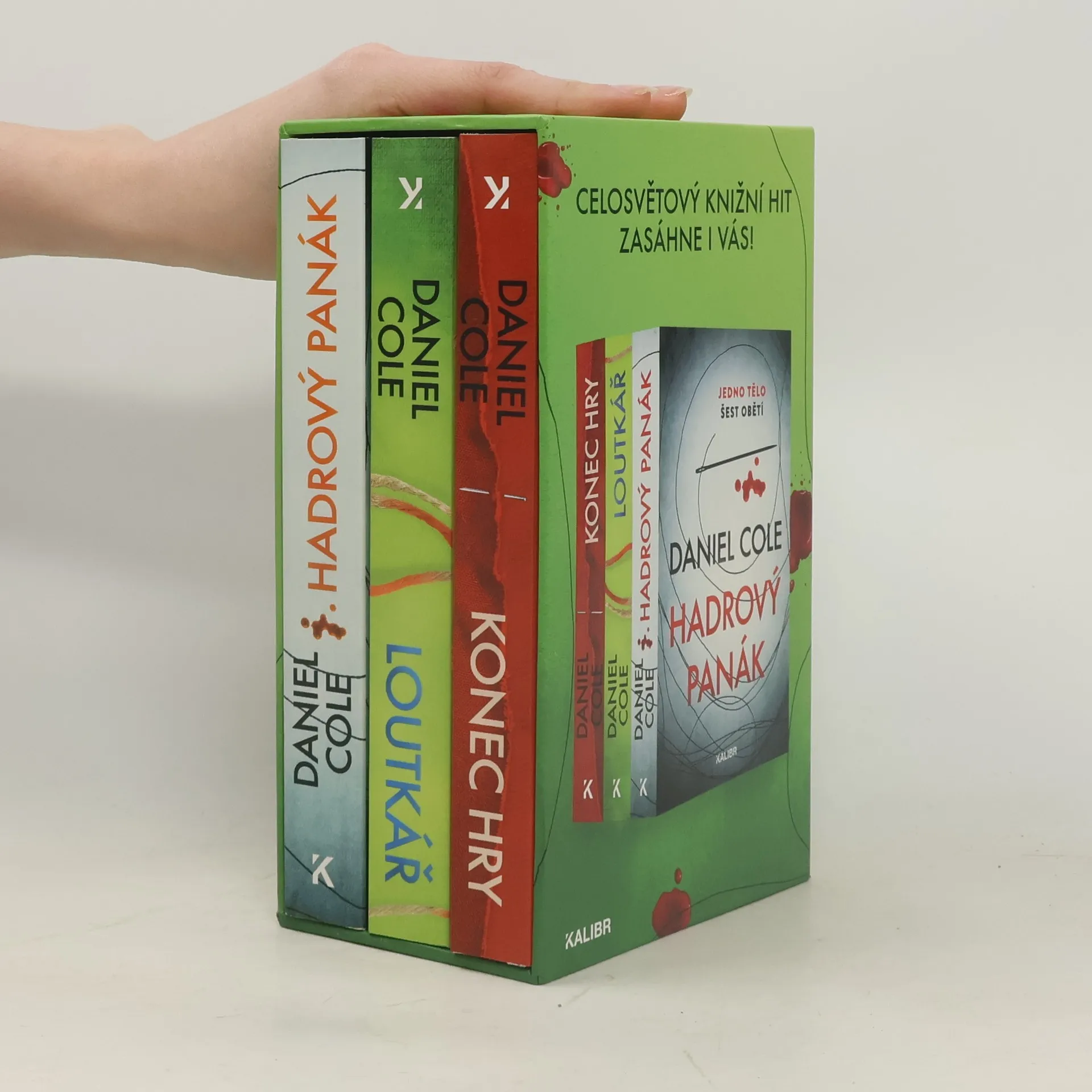Jedno tělo, šest obětí. Vrah, který nemá co ztratit. V sázce je vše... Trilogie krimithrillerů, které šokovaly, vyděsily a napnuly čtenáře po celém světě, nyní speciálně v dárkovém boxu. Začalo to hrůzným Hadrovým panákem (2017), případem mrtvoly sešité z částí různých těl a nalezené v jednom londýnském bytě. Debut Daniela Colea vyšel ve více než třiceti jazycích a ve všech zemích atakoval nejvyšší příčky žebříčku bestsellerů. Pokračovalo to neméně úspěšným a brutálním Loutkářem (2018) o sérii nezvyklých vražd, jejichž oběti mají na hrudi vyřezané slovo „NÁVNADA“ a domnělí pachatelé slovo „LOUTKA“. A vyvrcholilo to Koncem hry (2019), kde se jedinečný vražedný kruh případů týmu kontroverzního detektiva Williama „Wolfa“ Fawkese a jeho kolegyně Emily Baxterové originálně uzavřel. Prozatím.