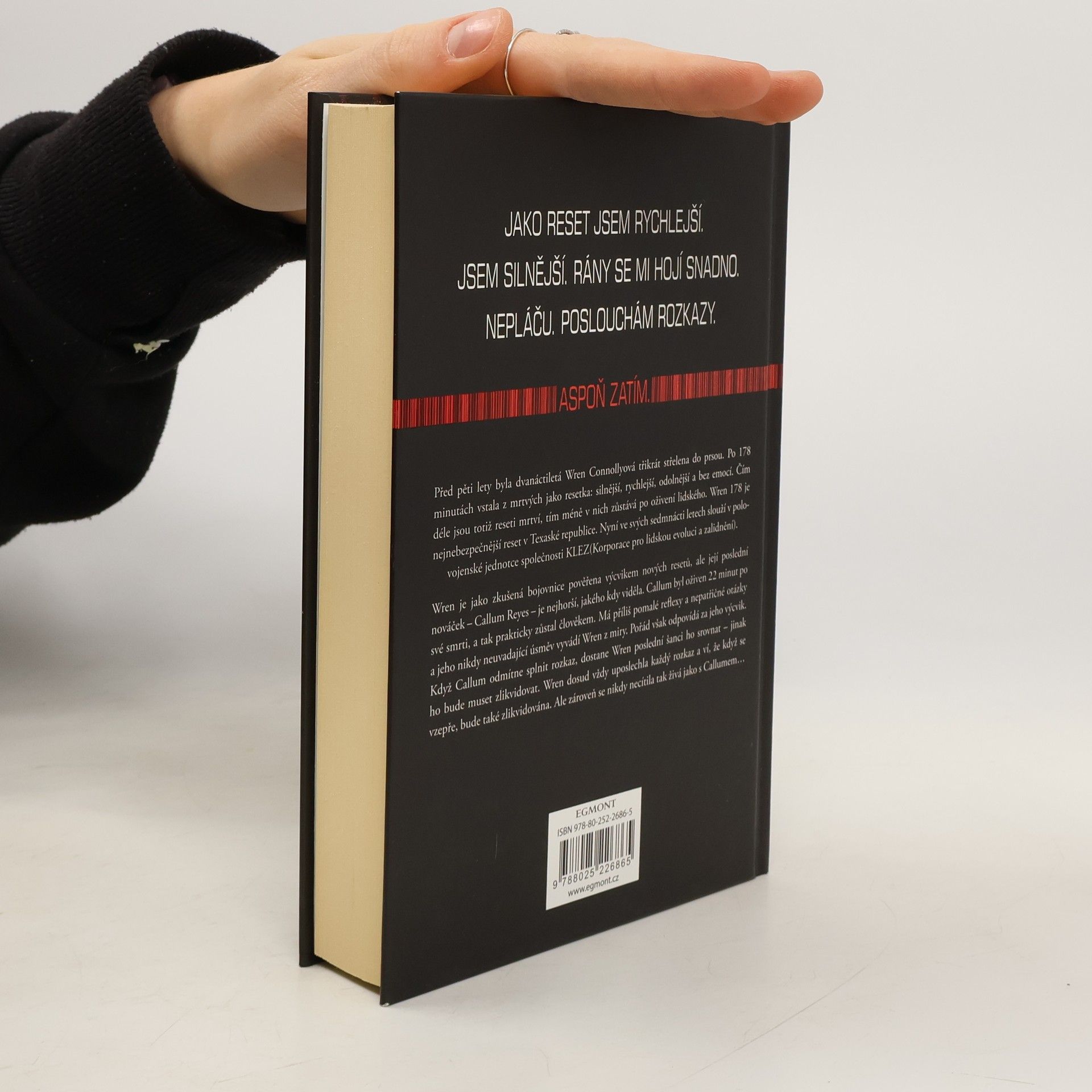 Před pěti lety byla dvanáctiletá Wren Connollyová třikrát střelena do prsou. Po 178 minutách vstala z mrtvých jako resetka: silnější, rychlejší, odolnější a bez emocí. Čím déle jsou totiž reseti mrtví, tím méně v nich zůstává po oživení lidského. Wren 178 je nejnebezpečnější reset v Texaské republice. Nyní ve svých sedmnácti letech slouží v polovojenské jednotce společnosti KLEZ (Korporace pro lidskou evoluci a zalidnění). Wren je jako zkušená bojovnice pověřena výcvikem nových resetů, ale její poslední nováček – Callum Reyes – je nejhorší, jakého kdy viděla. Callum byl oživen 22 minut po své smrti, a tak prakticky zůstal člověkem. Má příliš pomalé reflexy a nepatřičné otázky a jeho nikdy neuvadající úsměv vyvádí Wren z miry. Pořád však odpovídá za jeho výcvik. Když Callum odmítne splnit rozkaz, dostane Wren poslední šanci ho srovnat – jinak ho bude muset zlikvidovat. Wren dosud vždy uposlechla každý rozkaz a ví, že když se vzepře, bude také zlikvidována. Ale zároveň se nikdy necítila tak živá jako s Callumem… 1. vydání.