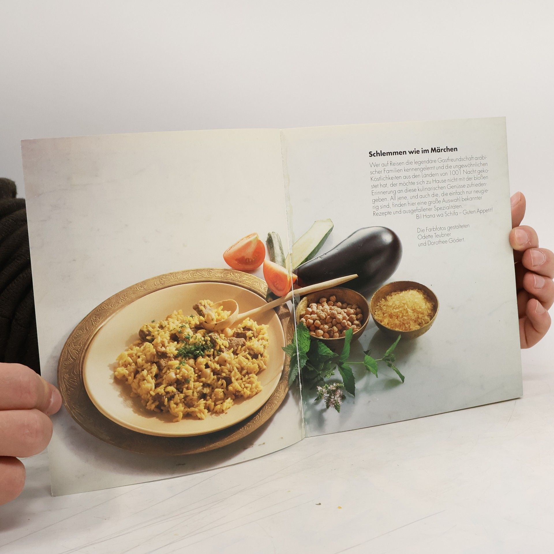 Bildkochbuch mit zahlreichen Rezepten der arabischen Küche, die reich an Gewürzen, Olivenöl und Knoblauch ist.