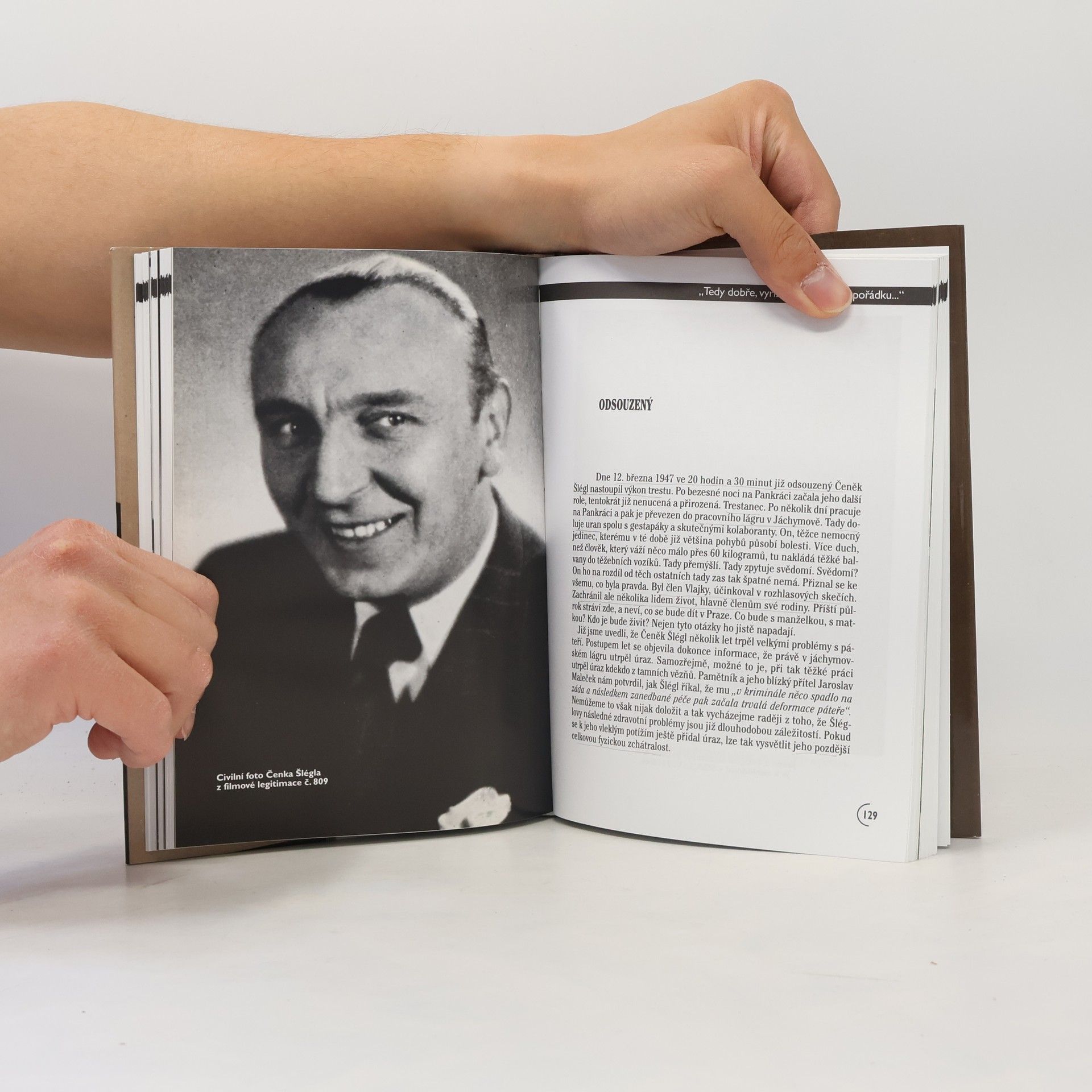 Čeněk Šlégl: „Tedy dobře, vyřízeno k dennímu pořádku...“. Dvě tváře herce, režiséra a scénáristy. Život nezaměnitelného prvorepublikového herce ČEŇKA ŠLÉGLA byl plný protikladů. Elegantní milovník z více než osmdesáti filmových rolí byl publikem stejně milován jako zatracován. Některé Šléglovy problematické životní kroky za války ho po osvobození přivedly až před soud. Jak však soudit člověka, který svůj lidský i umělecký kredit a de facto i život vědomě obětoval (až k hořkému konci), aby druzí mohli žít. Je to vlastně strhující příběh, potvrzující známou Dürrenmattovu tezi, že pravda, skutečná, nezjednodušená a ideologicky nezdeformovaná, jeví se pouze v paradoxu. Vydání první.