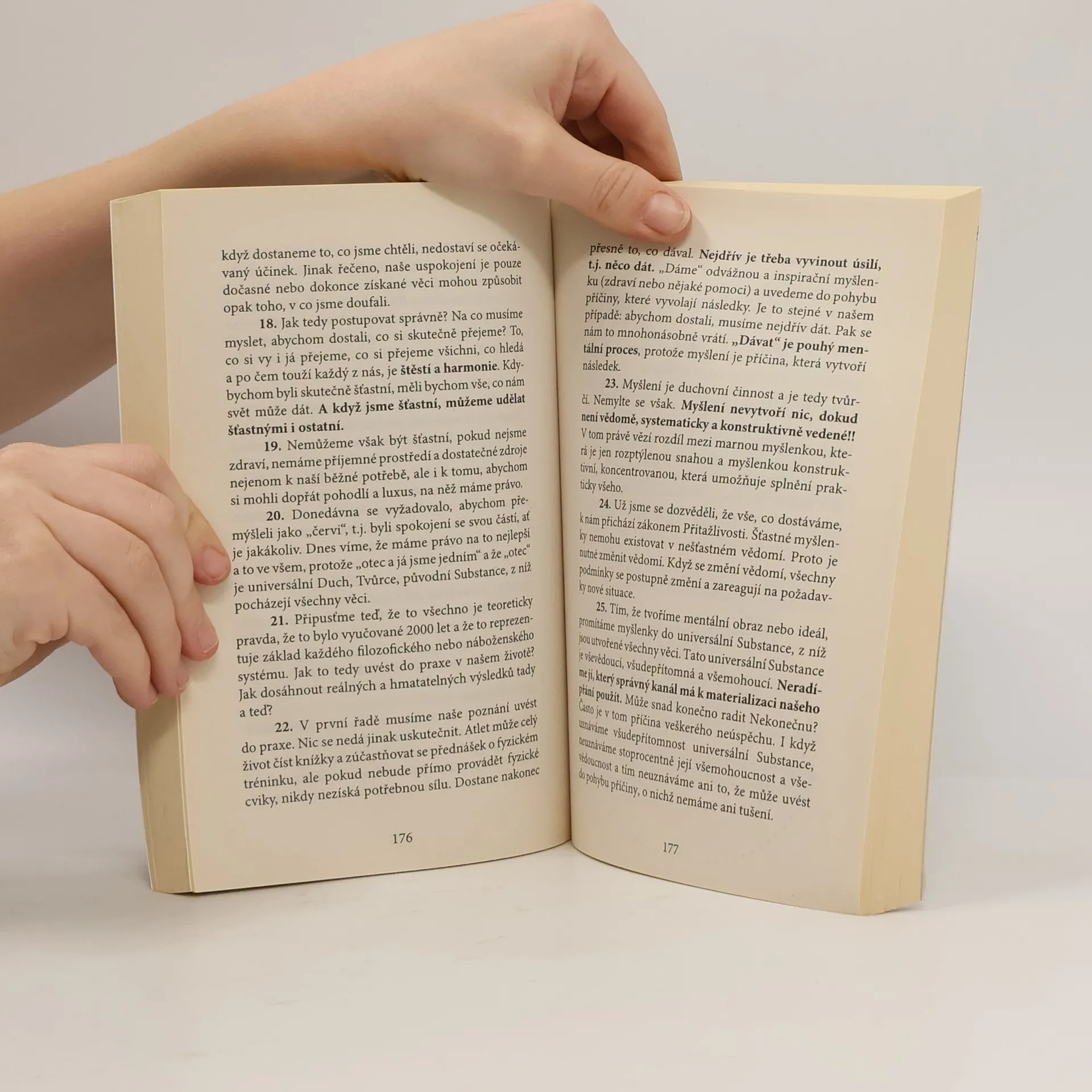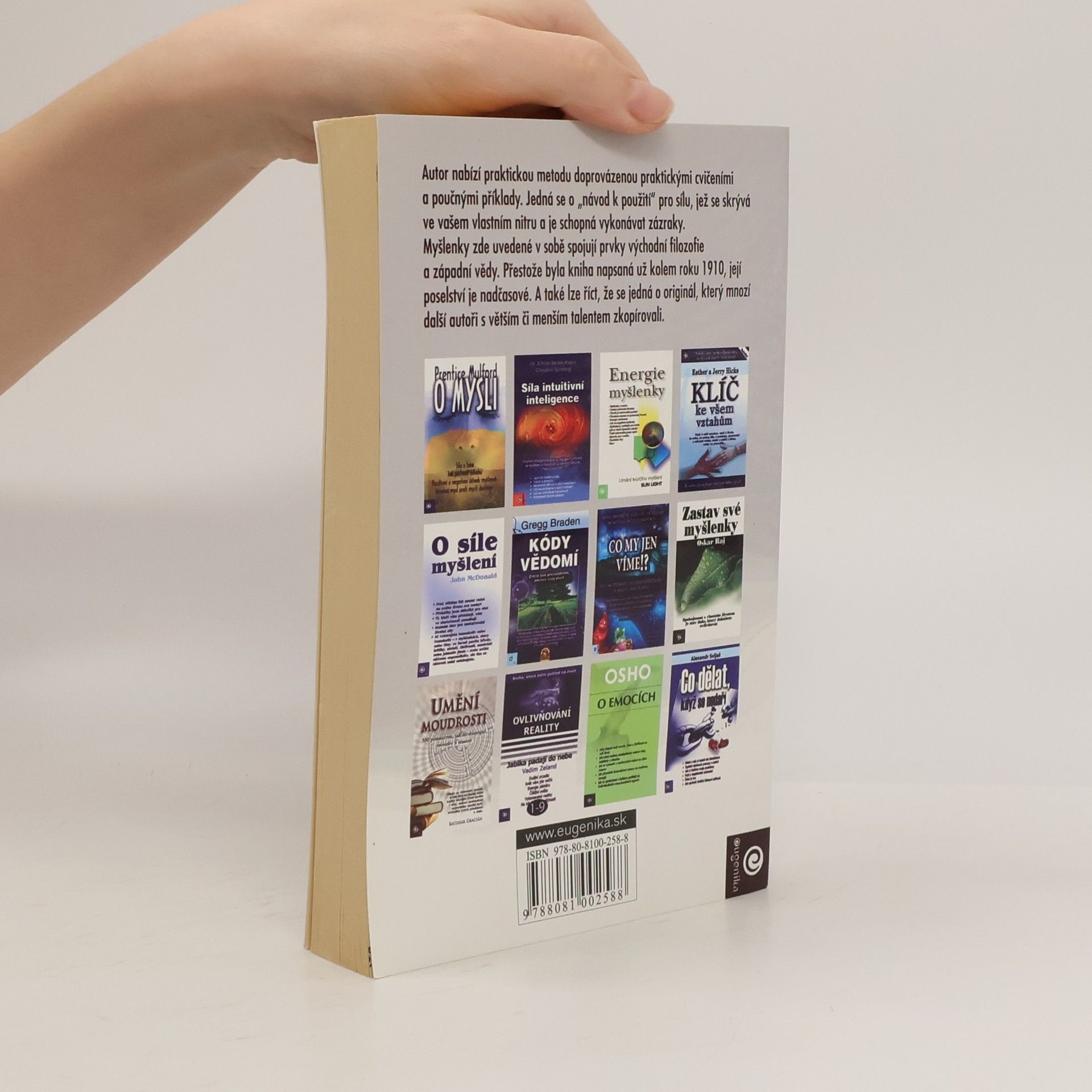 Autor nabízí praktickou metodu doprovázenou praktickými cvičeními a poučnými příklady. Jedná se o "návod k použití" síly, jež se skrývá ve vašem vlastním nitru a jež je schopná vykonávat zázraky. Myšlenky zde uvedené v sobě spojují prvky východní filosofie a západní vědy. Přestože byla kniha napsaná kolem r. 1910, její poselství je nadčasové. A také lze říct, že se jedná o originál, který mnozí další autoři zkopírovali s větším či menším talentem.