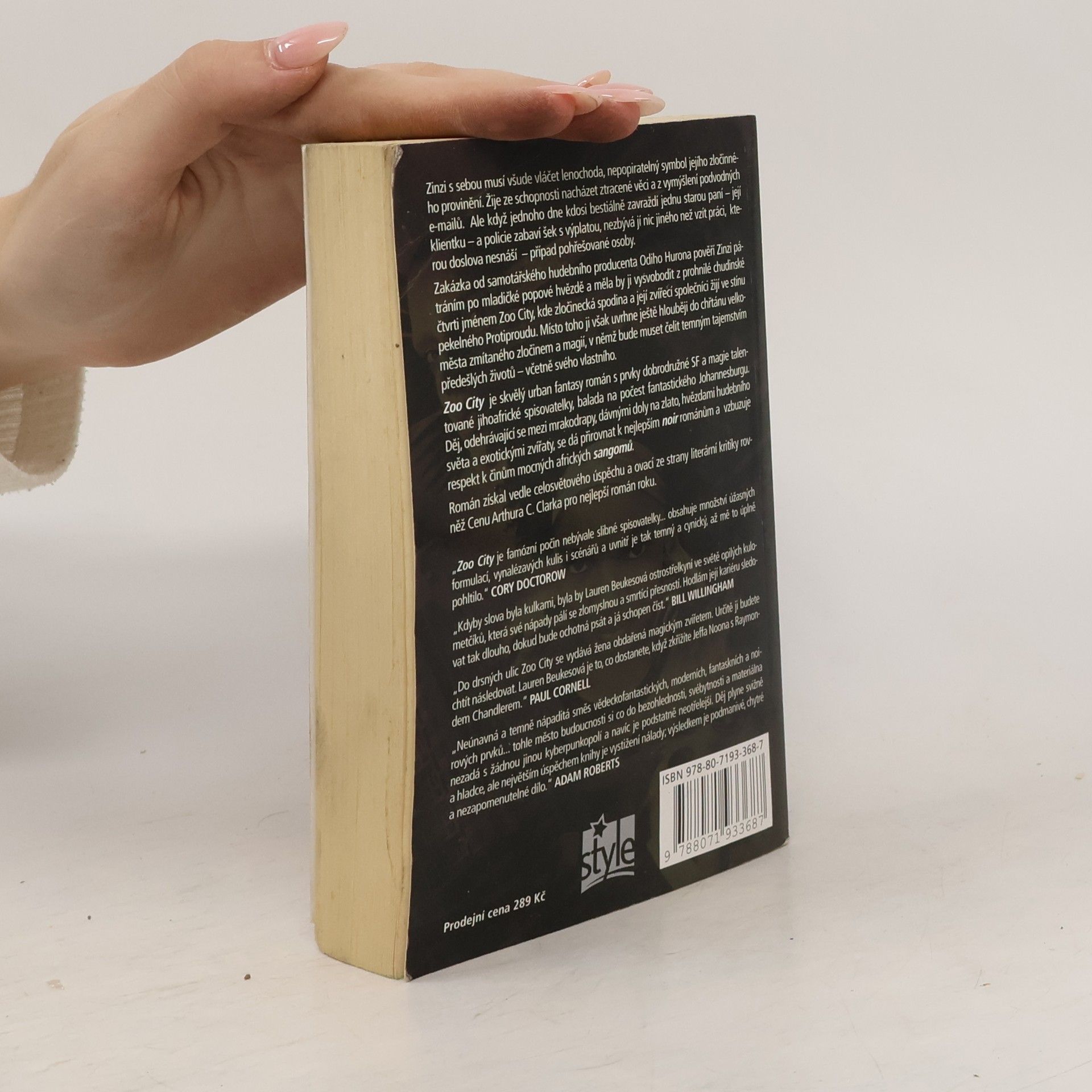 Zinzi s sebou musí všude vláčet lenochoda, nepopiratelný symbol jejího zločinného provinění. Žije ze schopnosti nacházet ztracené věci a z vymýšlení podvodných e-mailů. Ale když jednoho dne kdosi bestiálně zavraždí jednu starou paní – její klientku – a policie zabaví šek s výplatou, nezbývá jí nic jiného než vzít práci, kterou doslova nesnáší – případ pohřešované osoby. Zakázka od samotářského hudebního producenta Odiho Hurona pověří Zinzi pátráním po mladické popové hvězdě a měla by ji vysvobodit z prohnilé chudinské čtvrti jménem Zoo City, kde zločinecká spodina a její zvířecí společníci žijí ve stínu pekelného Protiproudu. Místo toho ji však uvrhne ještě hlouběji do chřtánu velkoměsta zmítaného zločinem a magií, v němž bude muset čelit temným tajemstvím předešlých životů – včetně svého vlastního. Zoo City je skvělá urban fantasy s prvky dobrodružné science fiction a magie od talentované jihoafrické spisovatelky, balada na počest fantastického Johannesburgu. Děj, odehrávající se mezi mrakodrapy, dávnými doly na zlato, hvězdami hudebního světa a exotickými zvířaty, se dá přirovnat k nejlepším noirovým románům a vzbuzuje respekt k činům mocných afrických sangomu. Kniha získala vedle celosvětového úspěchu a ovací ze strany literární kritiky a nadšených čtenářů rovněž Cenu Arthura C. Clarka pro nejlepší román roku. -- zdroj: www.legie.info --