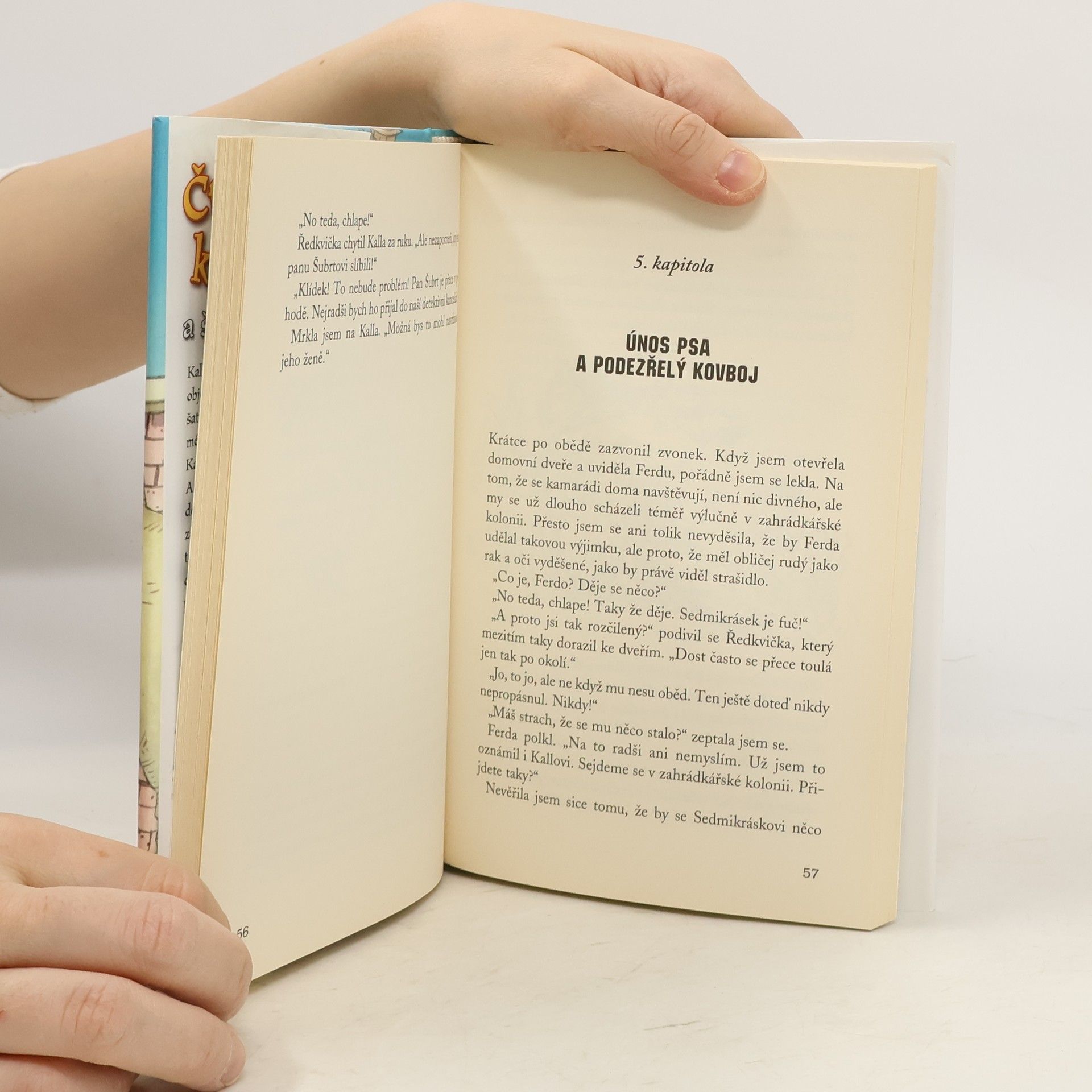 Z pronásledovatelů se stávají pronásledovaní. Kalle, Ferda, Štefka a Ředkvička objeví na trhu stánek se značkovými šaty, které se tam ale prodávají za méně než polovinu obvyklé ceny. Kalle hned zavětří nový případ! A protože pes slavných dětských detektivů Sedmikrásek má konečně začít chodit do psí školy, Kalle tentokrát věří, že jim pes v pátrání doopravdy pomůže. Ale to se hodně přepočítal. Nejen že Sedmikrásek dožene psího cvičitele k zuřivosti, ale pak zcela nečekaně zmizí. A Kallovi a jeho kamarádům jsou náhle v patách prodavači z podezřelého stánku. Z pronásledovatelů se stávají pronásledovaní a čtyři kamarádi zažívají se Sedmikráskem dobrodružství, o kterém se jim doopravdy ani nesnilo. Další román ze slavné série zaujme rychlým spádem, dobrodružnou zápletkou a nečekanými humornými zvraty, které rozesmějí malé i velké čtenáře.