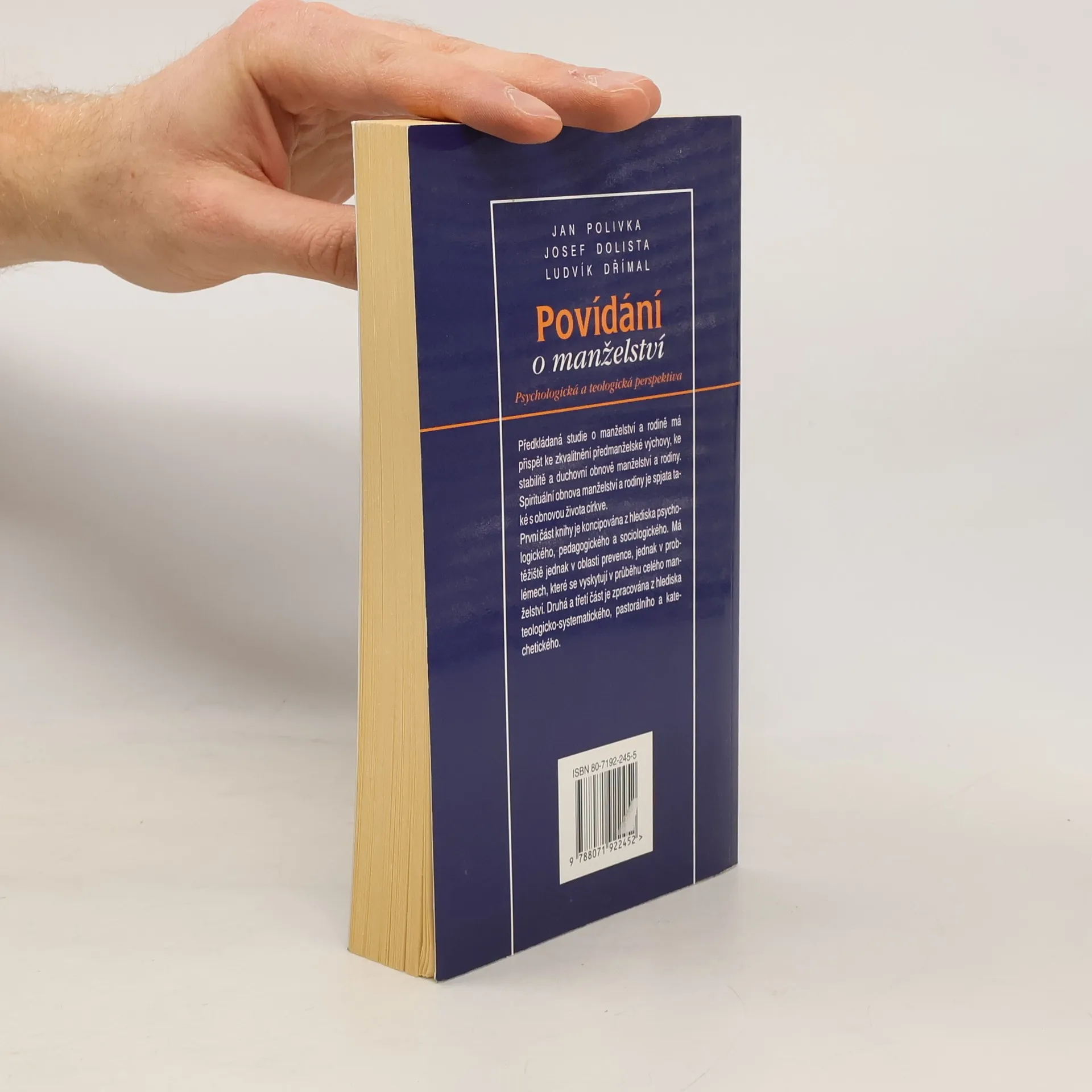 Psychologická a teologická perspektiva. Soubor třech studií se snaží o pohled na manželskou problematiku. První část je koncipována z hlediska psychologického, pedagogického a sociologického. Má těžiště jednak v oblasti prevence, stejně jako v přehledu problémů, které se mohou vyskytnout. Druhá a třetí část jsou zpracovány z hlediska pastorace. Předkládaná publikace má navodit otázky čtenářů, provokovat k hledání odpovědí, i povzbudit ty, kteří se na manželství připravují nebo kteří v něm žijí.