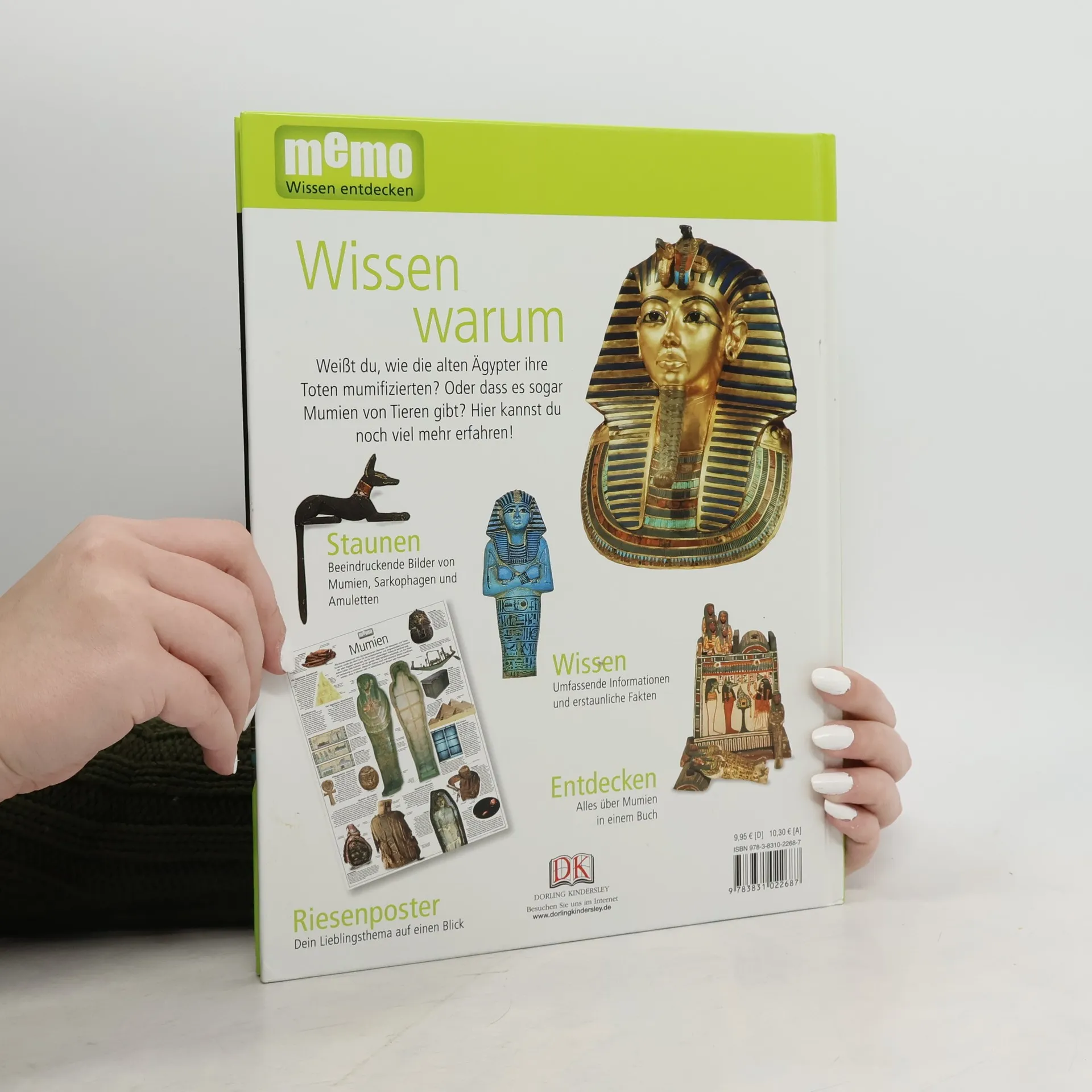 Wie mumifizieren Ägypter ihre Toten? Warum gibt es Mumien von Tieren? Liegt auf den Pharanon-Gräbern wirklich ein Fluch? Auf diese und viele weitere Fragen bekommen Kinder in Band 74 der großen Wissensreihe memo Antworten. Beeindruckende Bilder von verzierten Särgen, wertvollen Grabbeigaben und schaurigen-spannenden Mumien kombiniert mit gut gegliederten, kurzen Texten erklären die Thematik sachlich kompetent und für Kinder leicht verständlich. Auch schwierigere Sachverhalte werden so begreifbar. Rubriken wie „Erstaunliche Fakten“, „Fragen und Antworten“ oder „Rekordverdächtig“ vertiefen das vermittelte Wissen. Ein Glossar am Ende des Buches gibt einen Überblick zum gesamten Thema. Ideal als Ergänzung zum Schulunterricht und für Referate. Extra: Das tolle Riesenposter zum Thema „Mumien“ ist perfekt für die Kinderzimmerwand! In der großen Wissensreihe memo sind alle schulrelevanten Themen abgedeckt. Hier findet bestimmt jedes Kind sein Lieblingsthema!