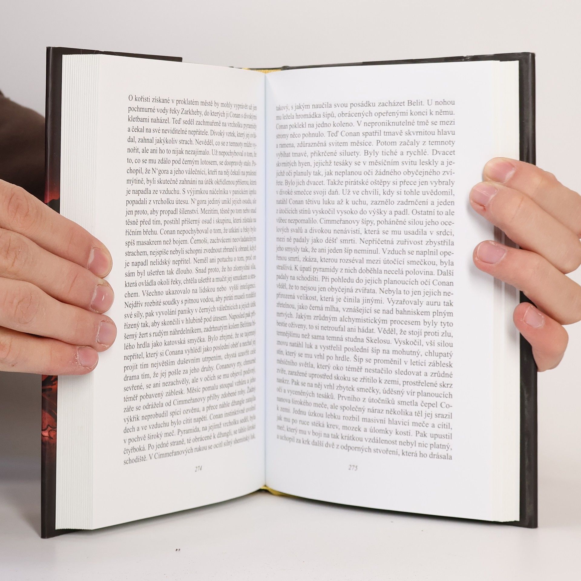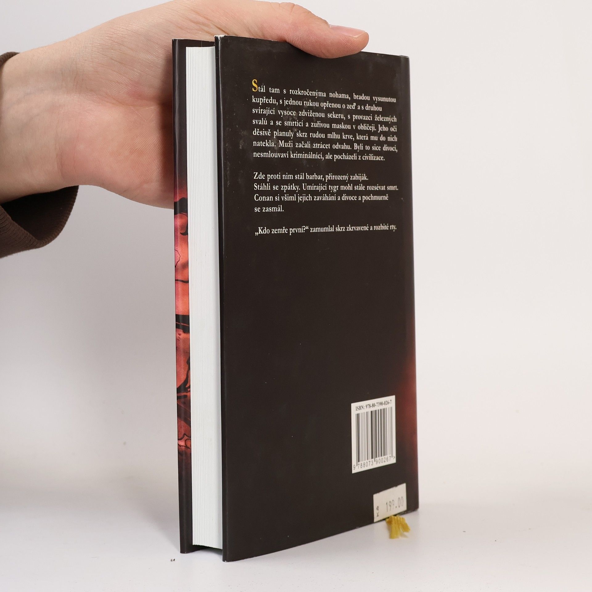 Barbar Conan pocházel z hornaté a divoké Cimmerie. Již od mládí vynikal obrovskou silou a brzy se začal účastnit loupežných nájezdů na sousední státy. Během jednoho z nich padl do zajetí a tak začala jeho kariéra dobrodruha, který svým mečem dokázal rozvrátit trůny i těch nejmocnějších království. Postava odvážného Cimmeřana si okamžitě získala srdce čtenářů. Během svého života R. E. Howard napsal dvacet jedna conanovských příběhů, čtyři z nich ale vyšly až posmrtně. Jeho hrdina ovlivnil desítky fantasy autorů, kteří stále dopisují další a další kapitoly barbarské ságy. První vydání. -- zdroj: www.legie.info --