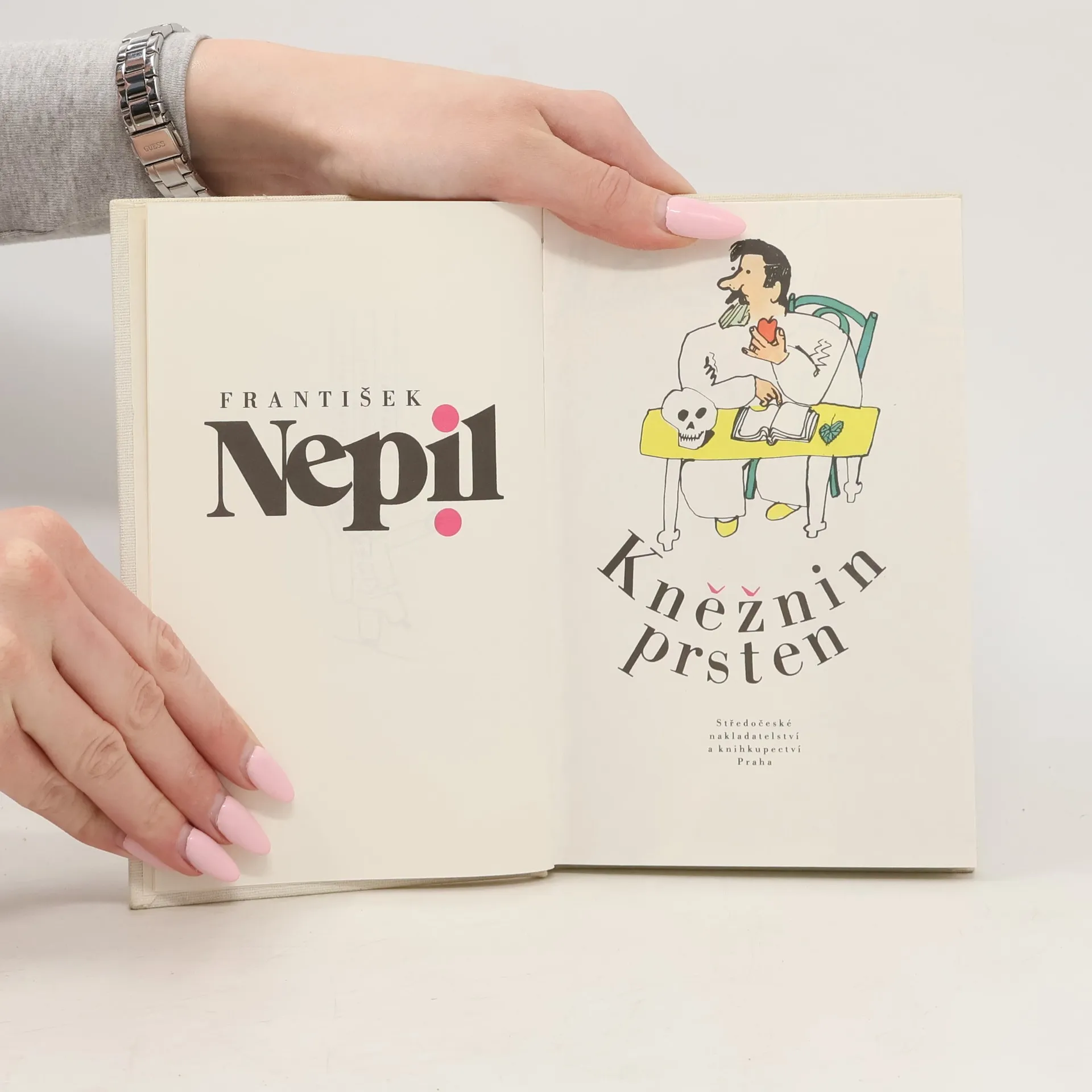 Vážený a milý pane Nepile, kolikpak roků uběhlo od vydání vašeho návodu Jak se dělá chalupa? A copak jste to tam na záložce čtenářům sliboval? Říkáte, že si teď ňák nemůžete... Ale můžete, můžete, jenže nechcete. Hryže Vás špatné svědomí, neboť Kněžnin prsten se měl objevit na knihkupeckých pultech hned následující rok po Chalupě, a to je dobrých - Ale nechme toho. Hlavně že je knížka na světě a to zpoždění, pane Nepile, Vám Vaši čtenáři jistě rádi odpustí. Vždyť za ně mohou vlastně oni. Už jim nestačily Vaše knížky, chtěli vidět Váš milý zjev, slyšet Váš podmanivý hlas, a tak Vám nabídky na besedy jen pršely. A Vy jste besedoval a besedoval - no, a práce na Kněžnině prstenu stála. Vaši chápaví čtenáři a posluchači Vám to však rádi odpustí, hlavně že se přece jen dočkali. Děkujeme za pěkný rukopis a už se těšíme na další, který se bude jmenovat... ne, ne, tentokrát žádné sliby! Necháme se překvapit. S úctou Vaše redakce P.S. Všiml jste si, pane Nepile, že jste si tentokrát nemusel psát text na záložku?