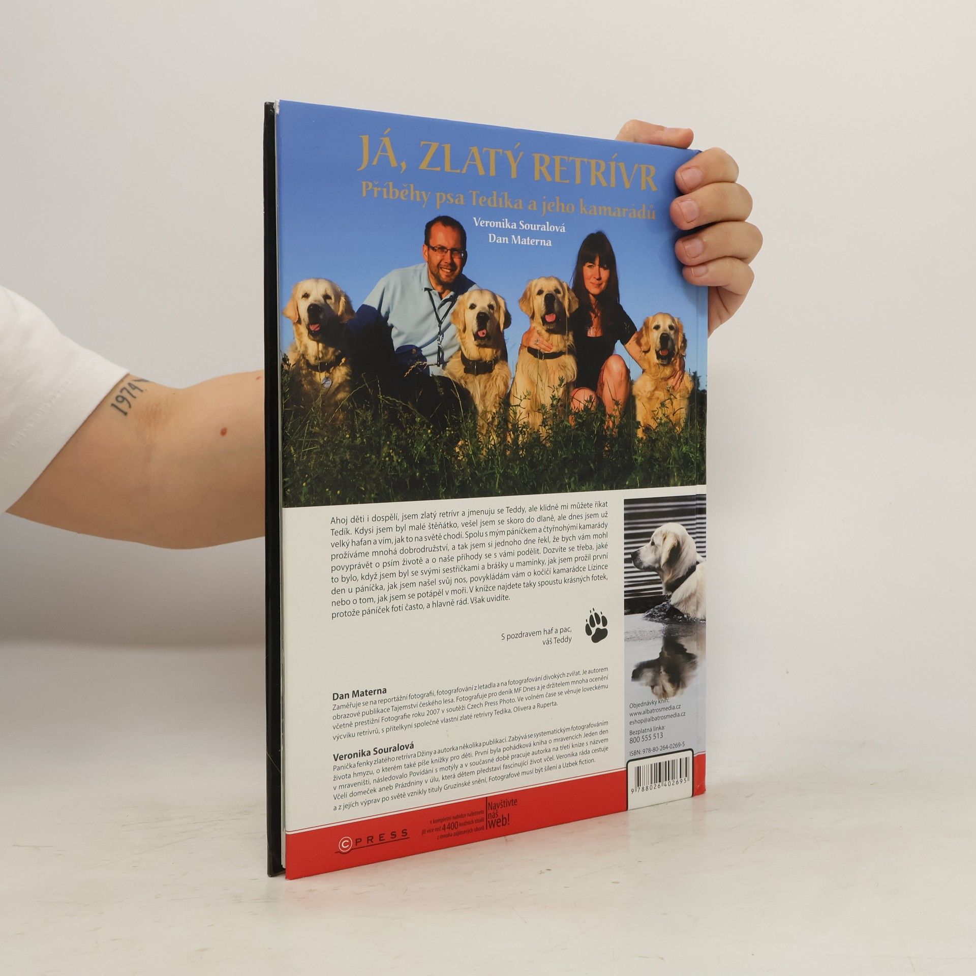 Ahoj děti i dospělí, jsem zlatý retrívr a jmenuju se Teddy, ale klidně mi můžete říkat Tedík. Kdysi jsem byl malé štěňátko, vešel jsem se skoro do dlaně, ale dnes jsem už velký hafan a vím, jak to na světě chodí. Spolu s mým páníčkem a čtyřnohými kamarády prožíváme mnohá dobrodružství, a tak jsem si jednoho dne řekl, že bych vám mohl povyprávět o psím životě a o naše příhody se s vámi podělit. Dozvíte se třeba, jaké to bylo, když jsem byl se svými sestřičkami a brášky u maminky, jak jsem prožil první den u páníčka, jak jsem našel svůj nos, povykládám vám o kočičí kamarádce Lízince nebo o tom, jak jsem se potápěl v moři. V knížce najdete taky spoustu krásných fotek, protože páníček fotí často, a hlavně rád. Však uvidíte… S pozdravem haf a pac, váš Teddy.