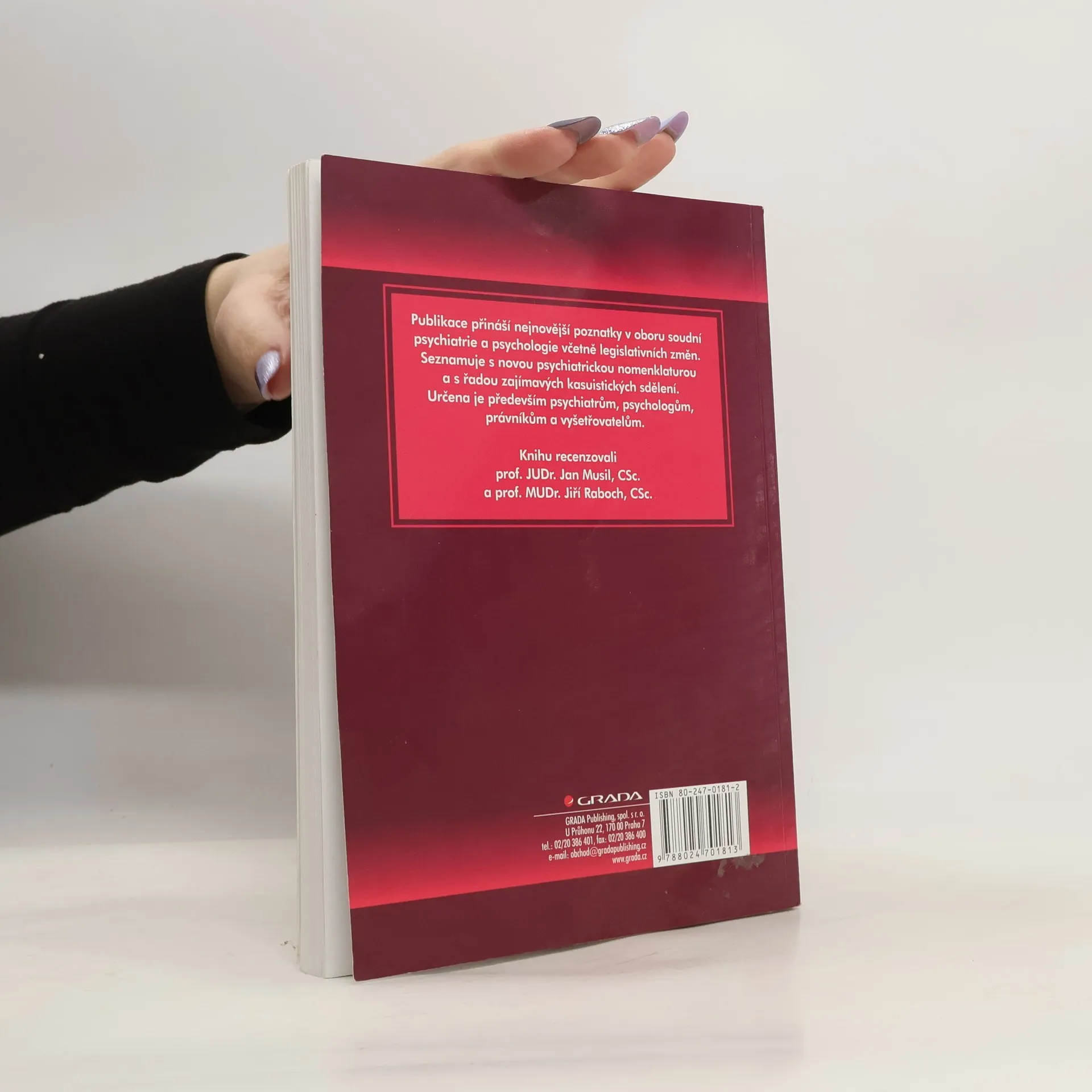 Soudní psychiatrie je obor, který přesahuje rámec rozsáhlého lékařského oboru klinické psychiatrie a hraničí s oblastmi somatické medicíny, právními vědami, kriminologií, kriminalistikou, penologií a viktimologií. Další vydání úspěšné knihy kolektivu autorů v čele s doc. MUDr. Pavlem Pavlovským, CSc., se pokouší zachytit rozsáhlou problematiku soudní psychiatrie z hlediska klinické psychiatrie dospělých, pedopsychiatrie, sexuologie a klinické psychologie. Jednotlivé oblasti zpracovávají znalci pracující ve zmíněných oblastech dlouhou řadu let a své bohaté zkušenosti se snaží předávat formou srozumitelnou jak pro kolegy psychiatry a psychology, tak pro právníky a vyšetřovatele policie, kteří se o danou problematiku zajímají. Seznamují čtenáře s novou psychiatrickou nomenklaturou, sjednocují co možná nejvíce názory znalců na obtížné problémy oboru, a vše doplňují zajímavými kazuistickými sděleními.