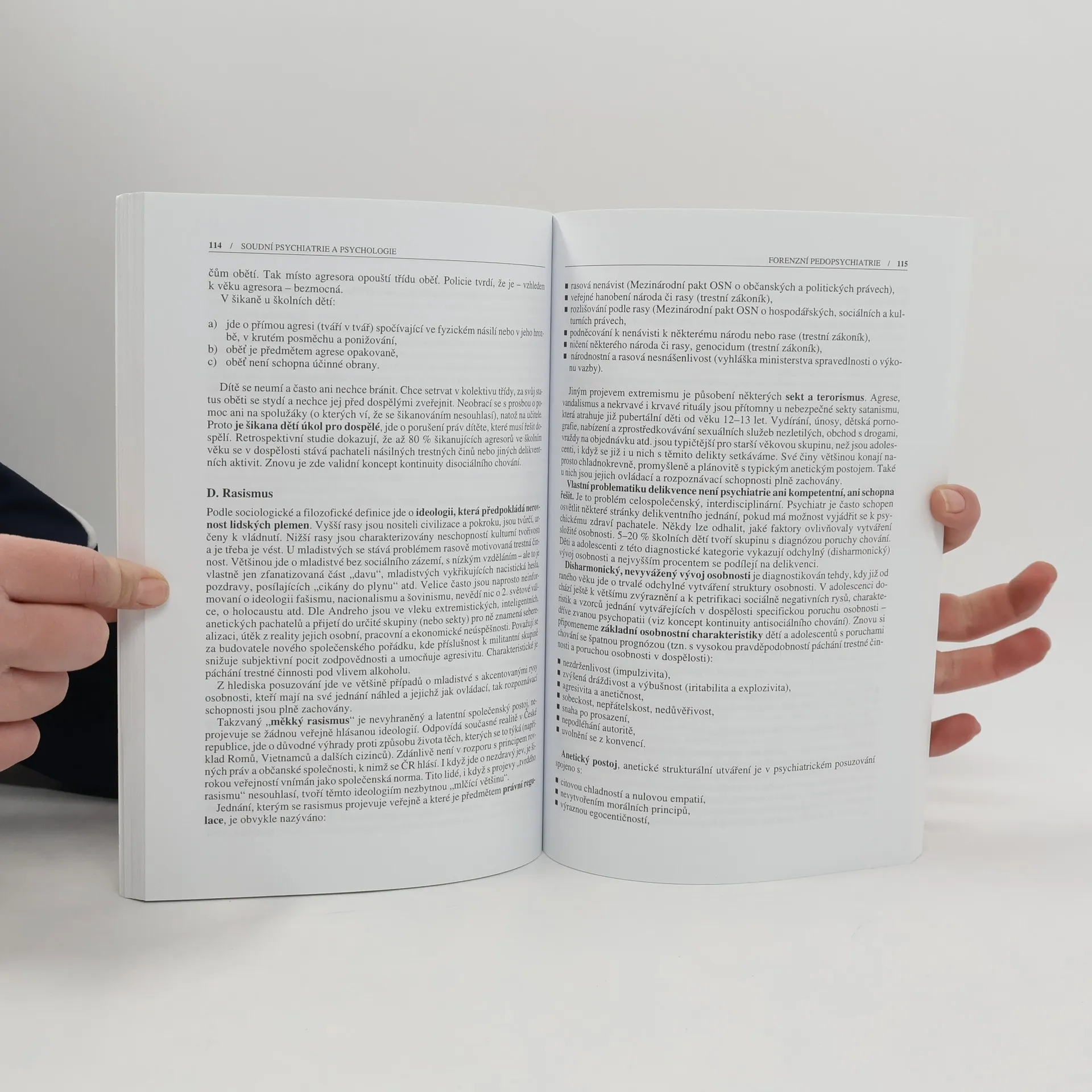 Soudní psychiatrie je obor, který přesahuje rámec rozsáhlého lékařského oboru klinické psychiatrie a hraničí s oblastmi somatické medicíny, právními vědami, kriminologií, kriminalistikou, penologií a viktimologií. Další vydání úspěšné knihy kolektivu autorů v čele s doc. MUDr. Pavlem Pavlovským, CSc., se pokouší zachytit rozsáhlou problematiku soudní psychiatrie z hlediska klinické psychiatrie dospělých, pedopsychiatrie, sexuologie a klinické psychologie. Jednotlivé oblasti zpracovávají znalci pracující ve zmíněných oblastech dlouhou řadu let a své bohaté zkušenosti se snaží předávat formou srozumitelnou jak pro kolegy psychiatry a psychology, tak pro právníky a vyšetřovatele policie, kteří se o danou problematiku zajímají. Seznamují čtenáře s novou psychiatrickou nomenklaturou, sjednocují co možná nejvíce názory znalců na obtížné problémy oboru, a vše doplňují zajímavými kazuistickými sděleními.