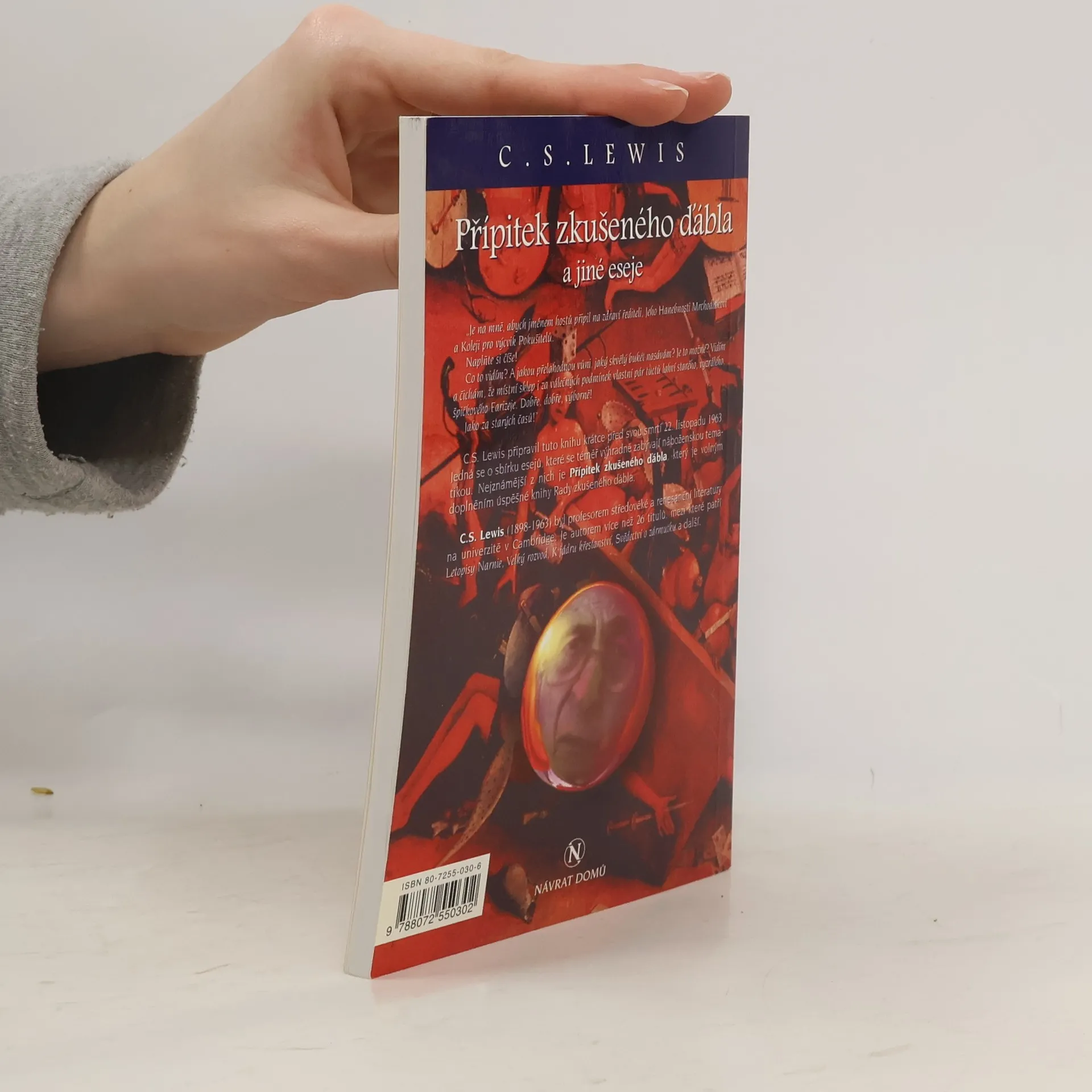 „Je na mně, abych jménem hostů připil na zdraví řediteli, Jeho Hanebnosti Mrchodlakovi, a Koleji pro výcvik Pokušitelů. Naplňte si číše! Co to vidím? A jakou přelahodnou vůni, jak skvělý bukét nasávám? Je to možné? Vidím a čichám, že místní sklep i za válečných podmínek vlastní pár tuctů lahví starého, vyzrálého špičkového Farizeje. Dobře, dobře, výborně! Jako za starých časů!“ C. S. Lewis připravil tuto knihu krátce před svou smrtí 22. listopadu 1963. Jedná se o sbírku esejů, které se téměř výhradně zabývají náboženskou tematikou. Nejznámější z nich je Přípitek zkušeného ďábla, který je volným doplněním úspěšné knihy Rady zkušeného ďábla. Druhé vydání