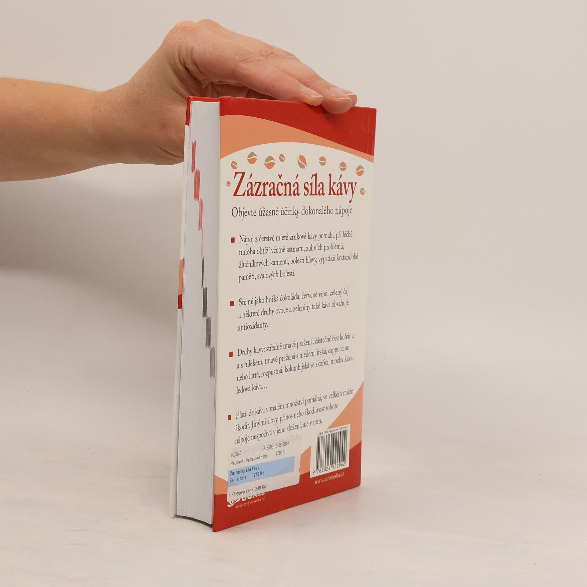 Caffé Latté nebo Espreso Macchiato? Začínáme den kávou, pijeme ji po dobrém jídle. Podle nových studií je konzumace kávy spojena se sníženým rizikem výskytu rakoviny. V klidu se posaďte, dejte si kávičku, a zatímco budete uvažovat o tom, jak kávou prospíváte vnitřním orgánům, nezapomeňte, že každým jejím douškem pomáháte i mozku. Konzumace kávy zlepšuje naše kognitivní funkce. Seznamte se s léčivými odrůdami a směsmi kávy, s tím, co si k tomuto nápoji dát, jak kávu zařadit do redukčních diet. Dokonce v knize najdete tipy, při jakém onemocnění káva pomáhá…
