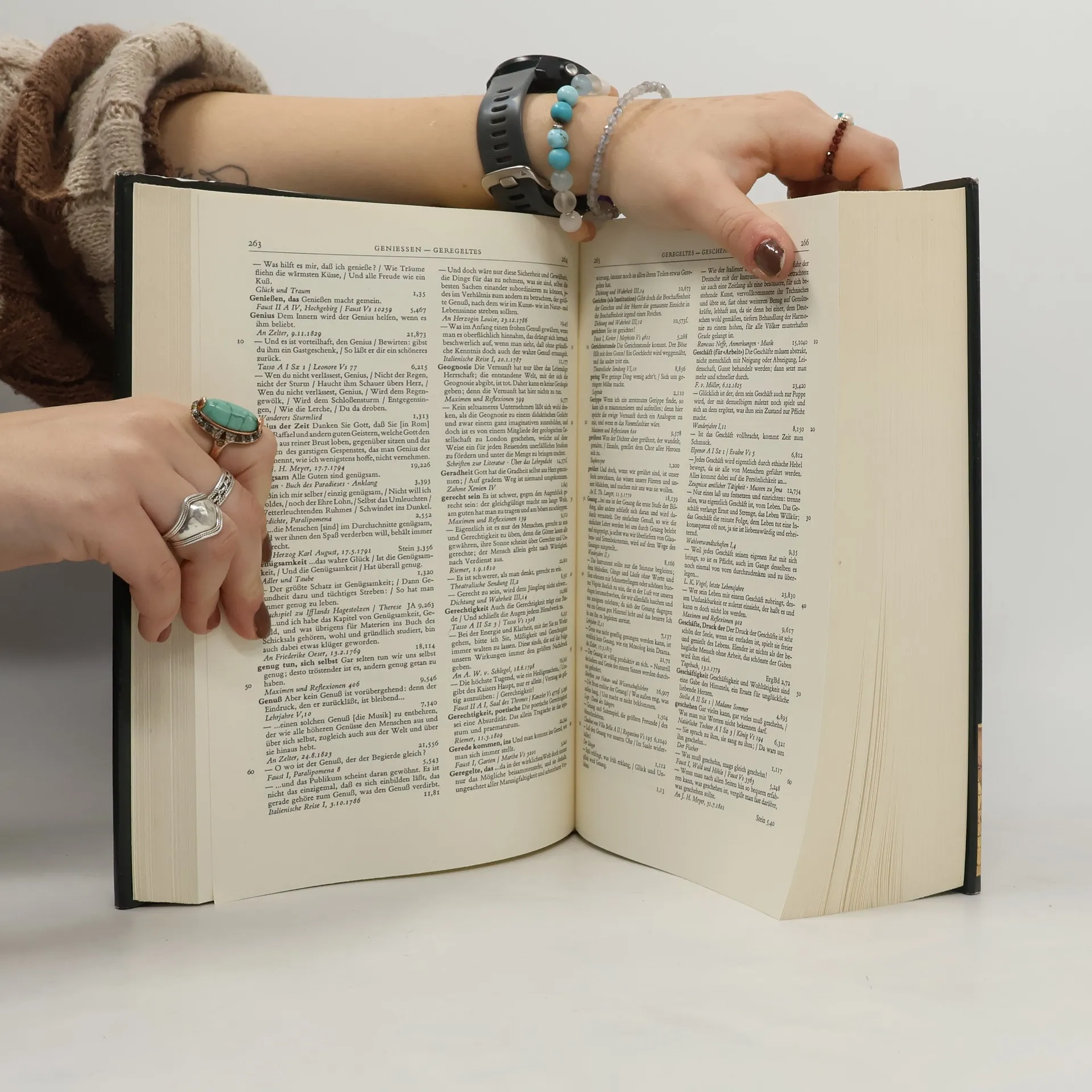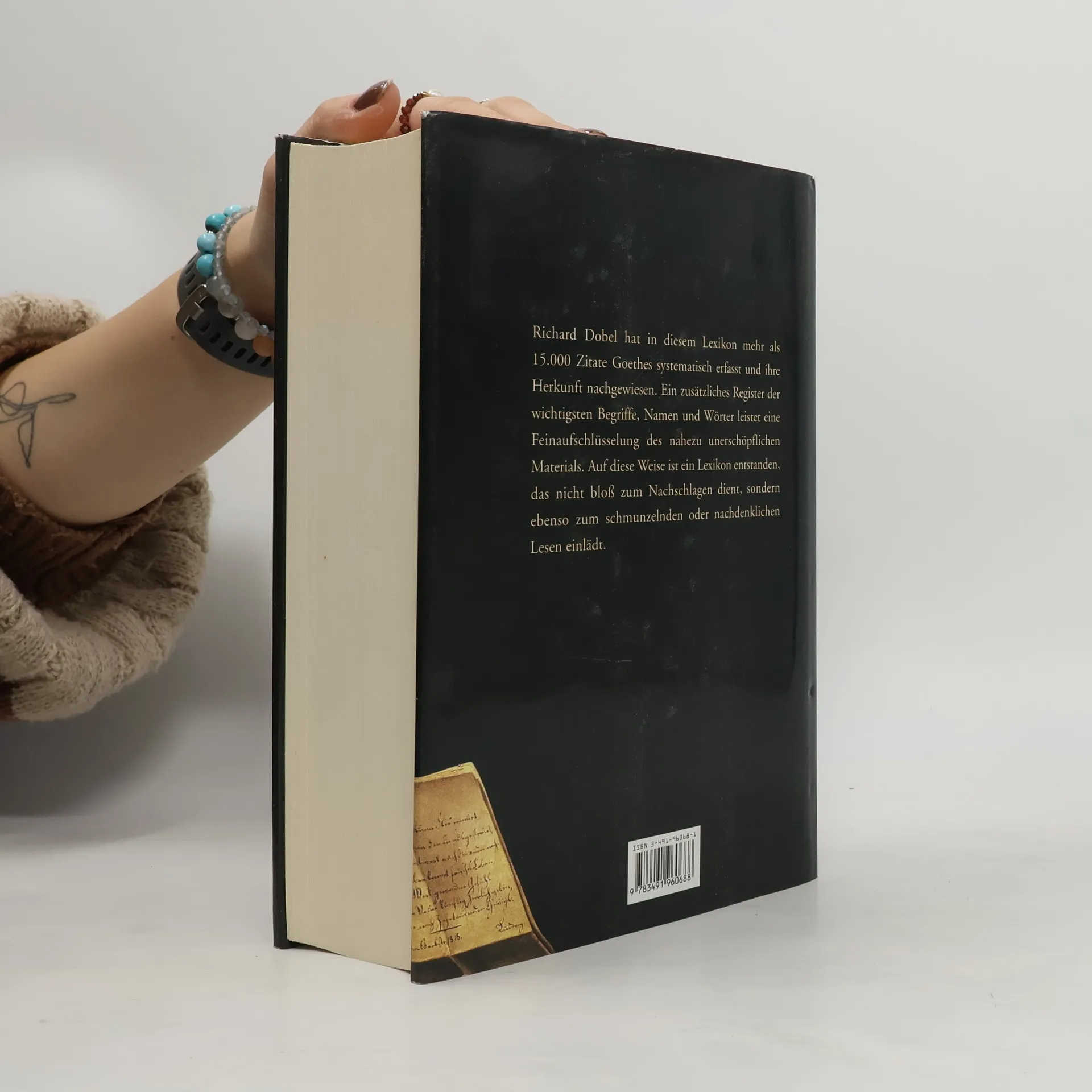 Ob für geistreiche Redner und Schreiber, für Goethekenner oder solche, die es werden wollen, oder einfach zum vergnüglichen Schmökern: Wohl dem, der sich der 15000 Zitate aus den Werken, Briefen und Gesprächen des berühmten Universalisten bedienen kann. Alphabetisch geordnet, mit Begriffs , Namen- und Wortregistern ist dieses Lexikon eine Fundgrube, ein Standardwerk seit fast 40 Jahren.