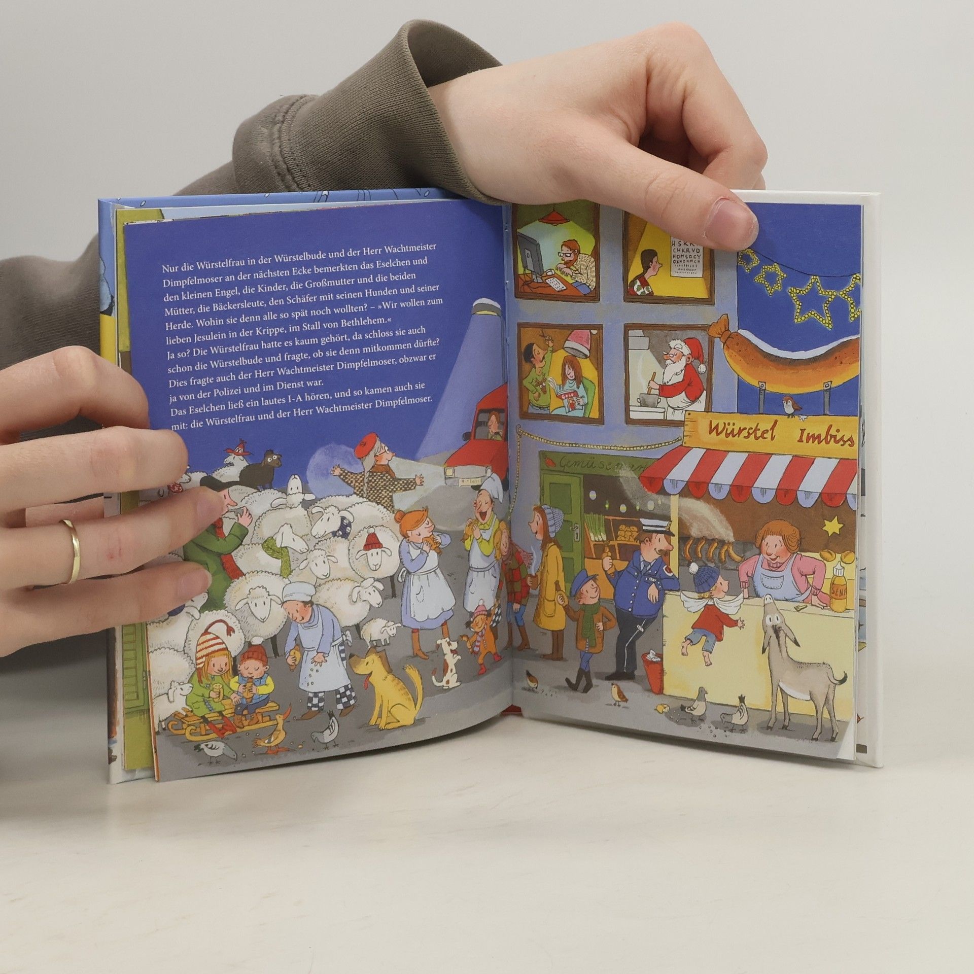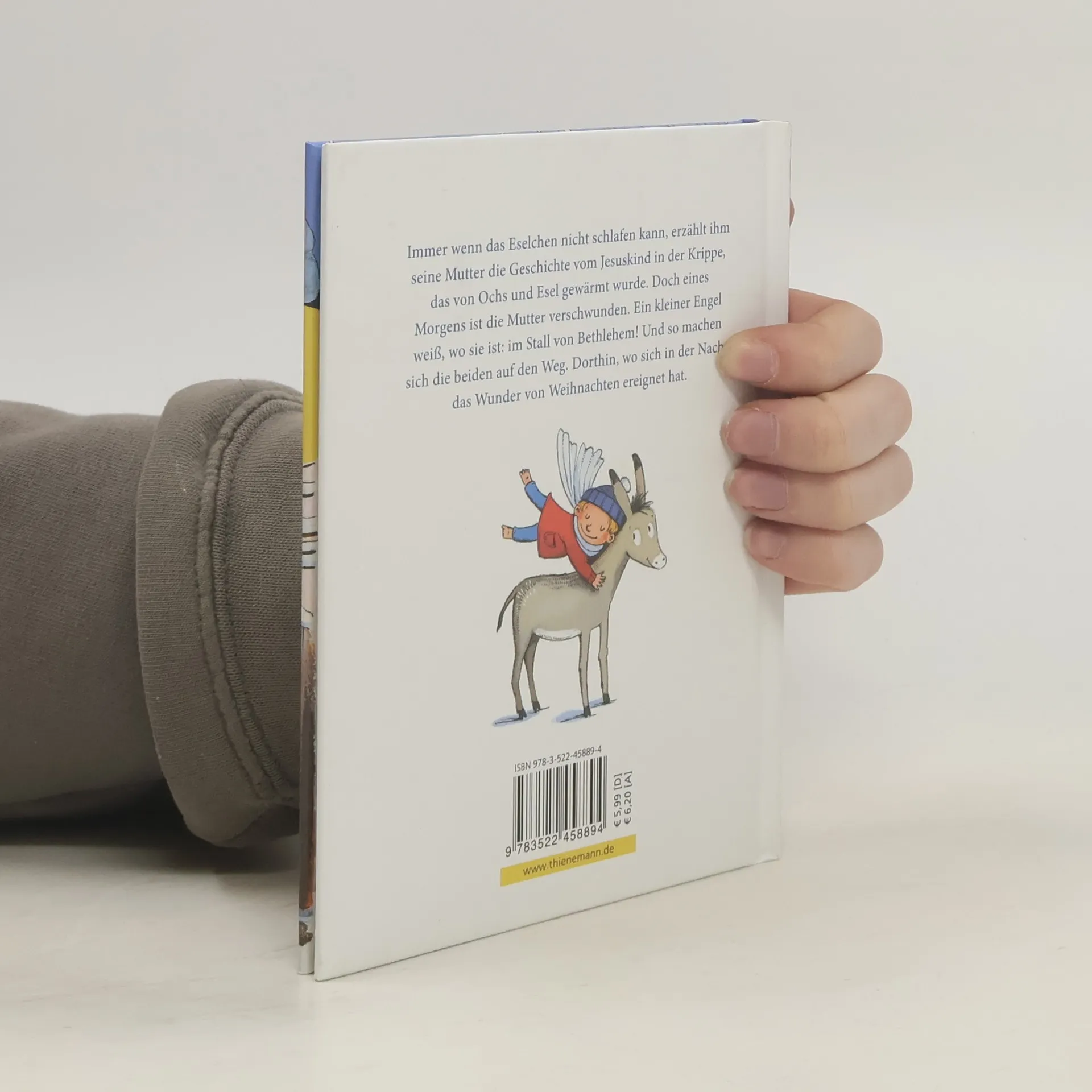 Otfried Preußlers Weihnachtsmärchen im Miniformat, für Kinder ab 4 Jahren. Als das Eselchen eines Morgens aufwacht, ist seine Mutter verschwunden! Aber zum Glück bleibt es nicht lange allein. Es bekommt Besuch von einem kleinen Engel, der weiß: Die Mutter ist beim Jesuskind, an der Krippe im Stall. Zusammen machen sich das Eselchen und der kleine Engel auf den Weg und laden alle ein, sie zu begleiten: Die Kinder, den Hirten mit seinen Schafen, die Bäckersfamilie, die Frau von der Würstchenbude und auch den Polizeiwachtmeister – sie alle schließen sich an und erleben gemeinsam das Wunder der Weihnacht.
