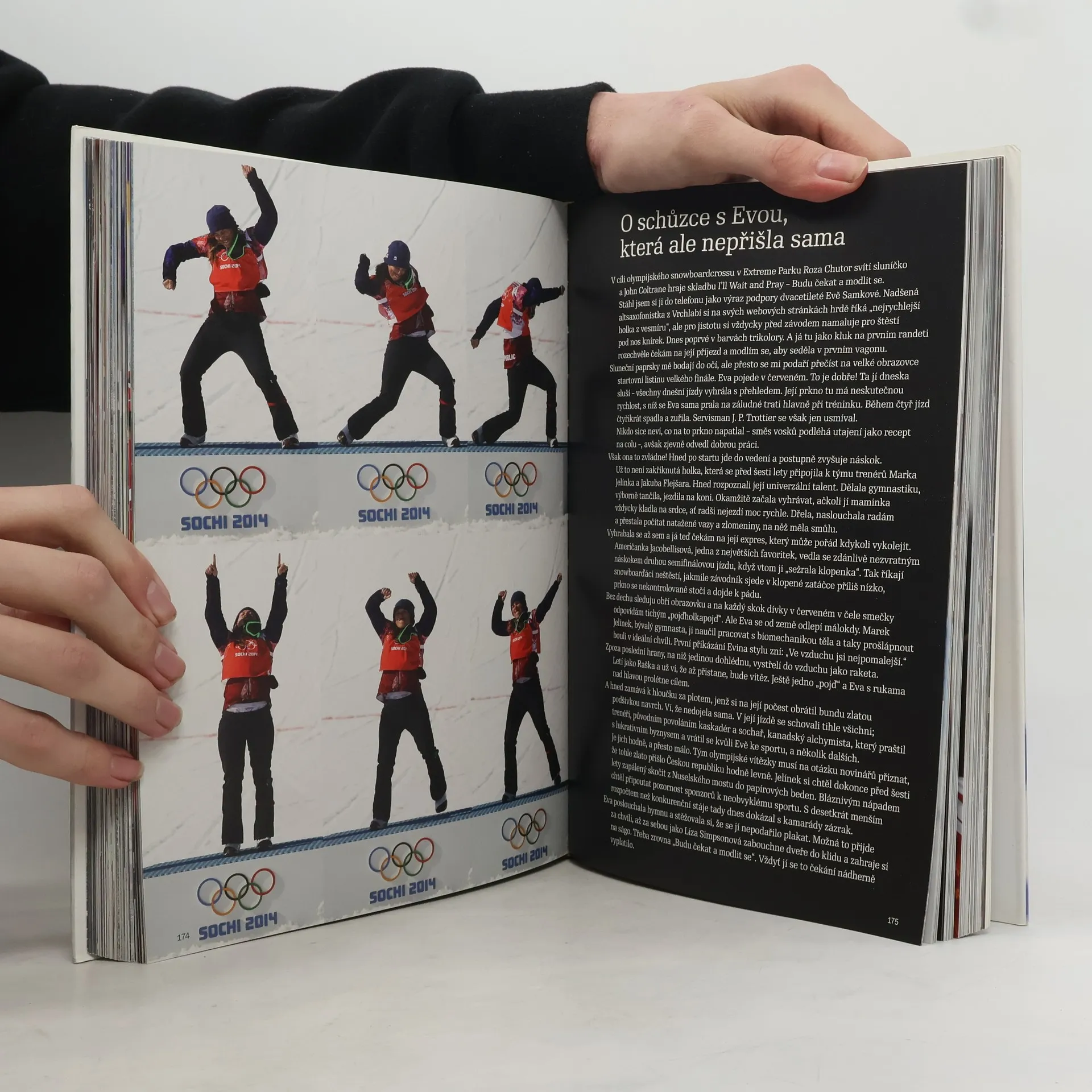 Oficiální publikace ČOV nabízí netradiční pohled na hry XXII. Zimní olympiády v Soči. Přináší snímky špičkových sportovních fotografů, kteří zaznamenají nejenom úspěchy a zklamání českých reprezentantů, ale také tvář olympijských her, která zůstává divákům skrytá - zákulisí, dřinu i odpočinek sportovců. Kromě výsledkového servisu se čtenáři jistě rádi začtou do nejdůležitějších příběhů, se které v průběhu her na sportovištích i mimo ně odehrály. Obsah knihy se připravoval na trase Soči - Praha přímo během konání akce a vychází bezprostředně po skončení olympiády. Věříme, že i tato kniha bude krásnou vzpomínkou na neopakovatelné sportovní i lidské zážitky. Kniha obsahuje 250 snímků uznávaných sportovních fotografů Jiřího Koliše a Herberta Slavíka. Jejich fotografie doprovodil osobitými postřehy přímo z dějiště her dlouholetý redaktor Reflexu Milan Tesař.