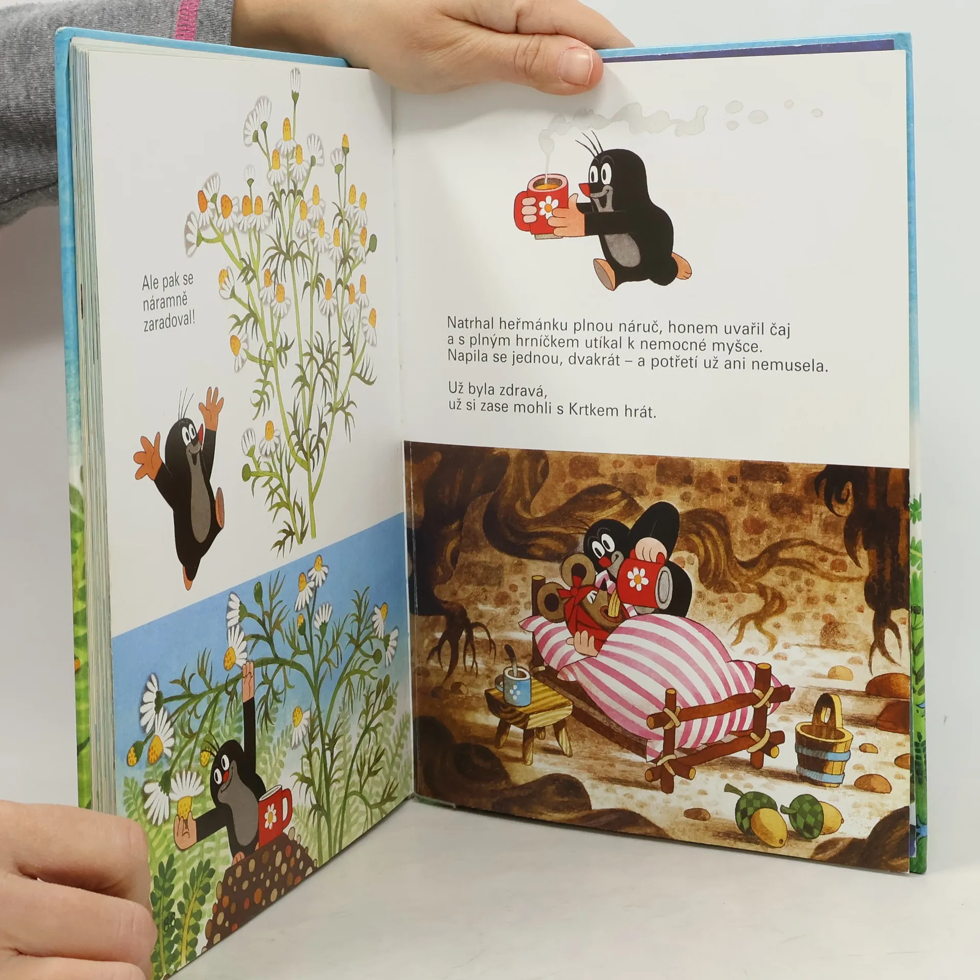 Není na světě nic lepšího nežli mít kamaráda. Krtek má kamarádku myšku. Ta však jednoho dne onemocněla a Krtek se vydal na dlouhou a dobrodružnou výpravu, aby našel zázračný lék, který by myšku vyléčil. Procestoval skoro celý svět - po souši i ve vodě i ve vzduchu. A víte, kde bylinku se zvláštním jménem Matricaria chamomilla nakonec našel? Nevíte? Potom jste ještě nepřečetli tuhle knížku. Vydejte se po Krtkových stopách a najdete ji i vy!