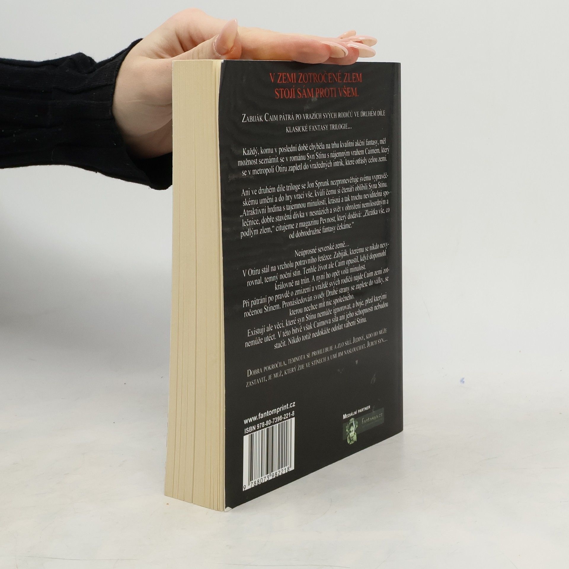 Neúprosné severské země… V Otiru stál na vrcholu potravního řetězce. Zabiják, kterému se nikdo nevyrovnal, temný noční stín. Tenhle život ale Caim opustil, když dopomohl královně na trůn. A nyní ho opět volá minulost. Při pátrání po pravdě o zmizení a vraždě svých rodičů najde Caim zemi zotročenou Stínem. Pronásledován svody Druhé strany se zaplete do války, se kterou nechce mít nic společného. Existují ale věci, které syn Stínu nemůže ignorovat, a boje, před kterými nemůže utéct. V této bitvě však Caimova síla ani jeho schopnosti nebudou stačit. Nikdo totiž nedokáže odolat vábení Stínu.