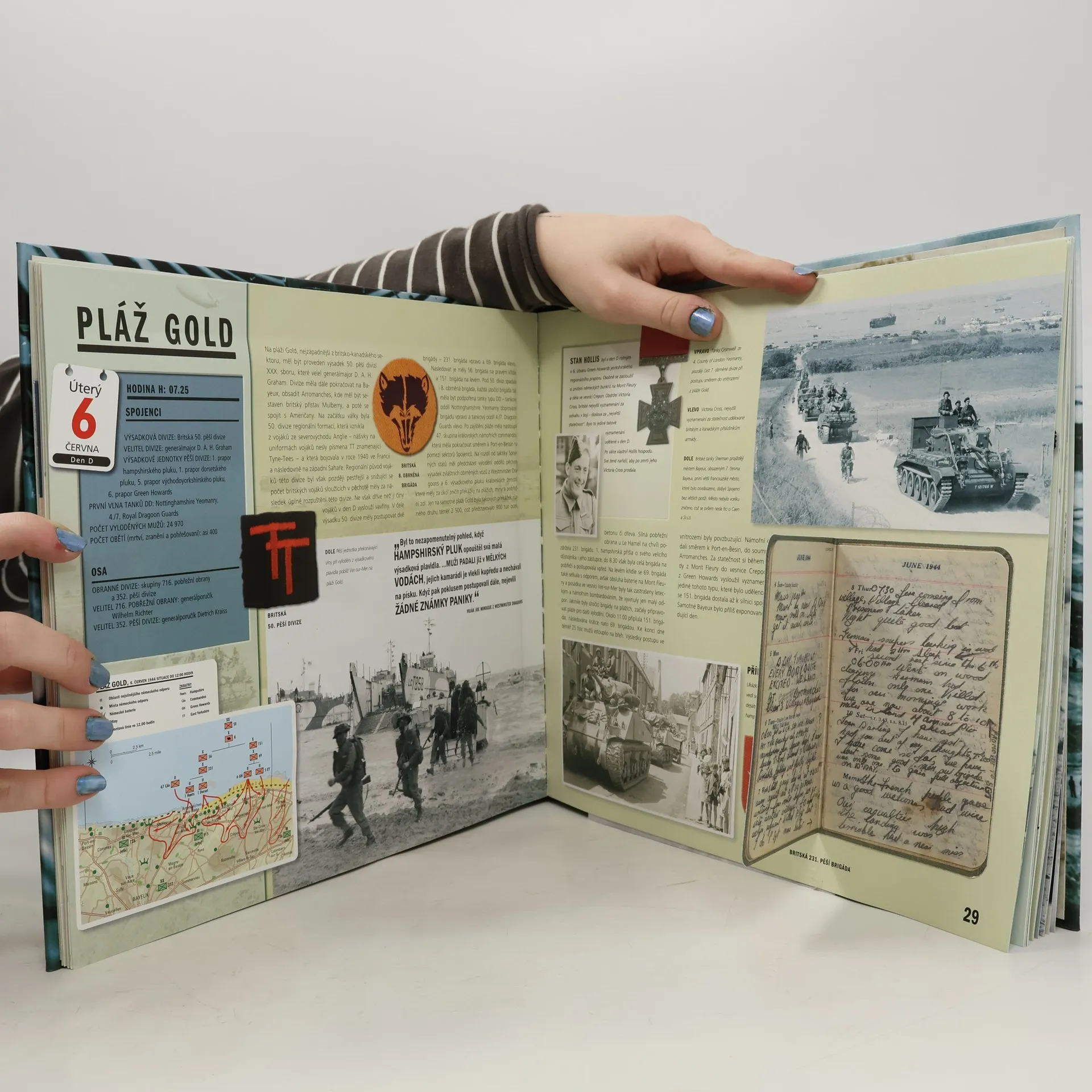 Den D - kniha předního britského vojenského historika obsahuje více než 30 unikátních dobových dokumentů, které jsou vloženy přímo mezi stránky. Čtenář může prožívat nejdramatičtější okamžiky moderní historie prostřednictvím dobových vojenských map, deníků a dopisů zúčastněných vojáků, tajných zpráv, rozkazů a hlášení, které může vzít sám do rukou a rozevřít. Dokumenty jsou ze sbírek Britského válečného muzea a z jiných sbírek z celého světa.