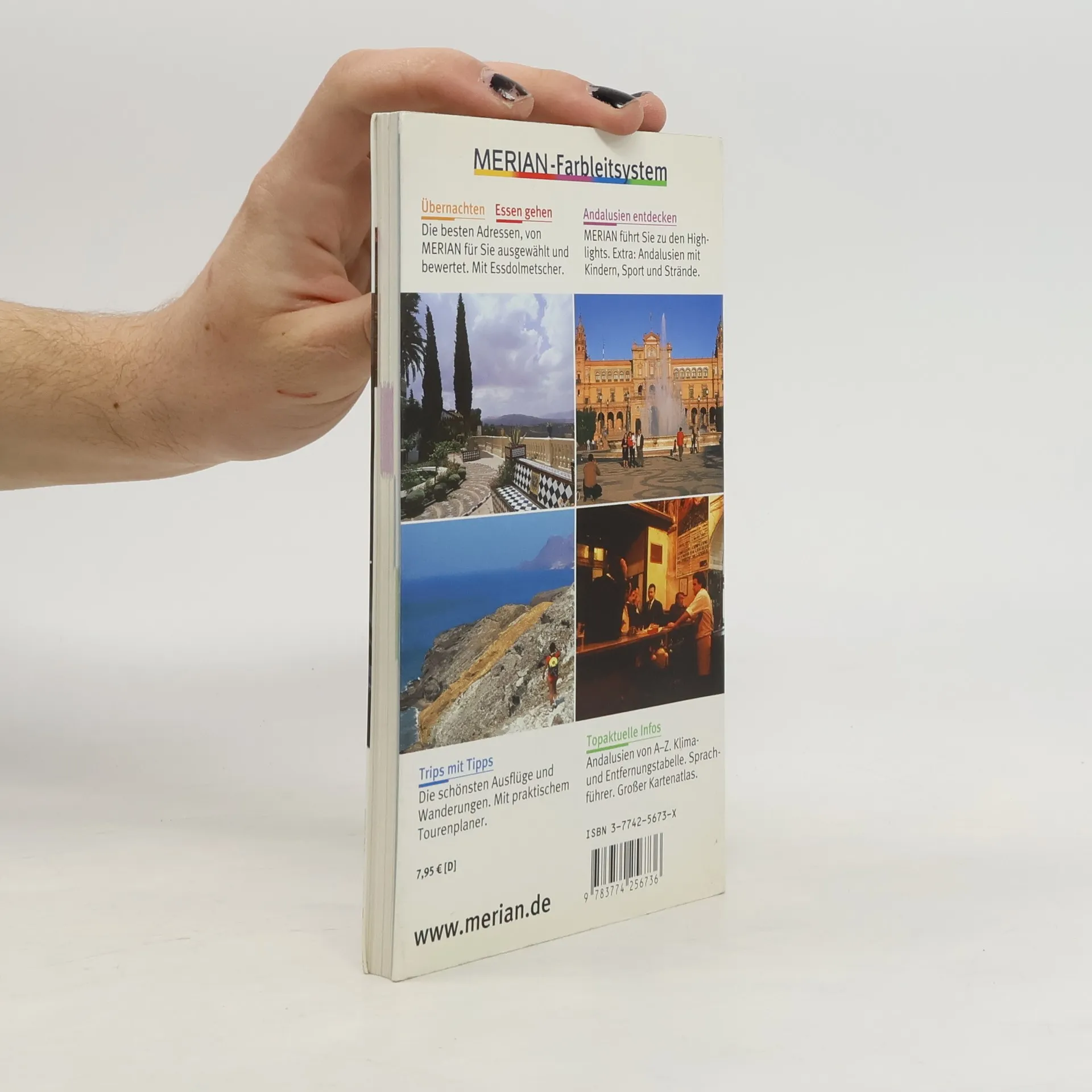 Mehrfach ausgezeichnet als bester Kompakt-Reiseführer: 1. Platz ITB BuchAward! Jetzt neu mit herausnehmbarem Stadtplan zusätzlich zum Kartenatlas. Extra: MERIAN-Quiz mit Gewinnspiel! +++ Eine Auswahl aus dem Inhalt: Die schönsten Orte und Regionen, u. a.: Die Costa de la Luz - Lebhafte Städte, Sandstrände und waldreiches Hinterland ++ Sevilla und Umgebung - Beeindruckende Sehenswürdigkeiten ++ Málaga und die Costa del Sol - Drehscheibe der Region Córdoba, Granada, Jaén - Wiege maurischer Blütezeit +++ Die 4 spannendsten Routen und Touren, u. a.: Von Vejer nach San Roque - Route der Weißen Dörfer ++ Von Granada durch die Alpujarras - Im Bergland ++ Von Málaga nach Sevilla - Landschaftsimpressionen +++ Ca. 60 Farbfotos, herausnehmbare Straßenkarte plus 12 Seiten Kartenatlas, 1 Übersichtskarte, 6 Stadtpläne, 1 Detailplan, Sprachführer und Essdolmetscher, MERIAN-TopTen und MERIAN-Tipps. MERIAN-Spezial-Thema: Neue andalusische Weine