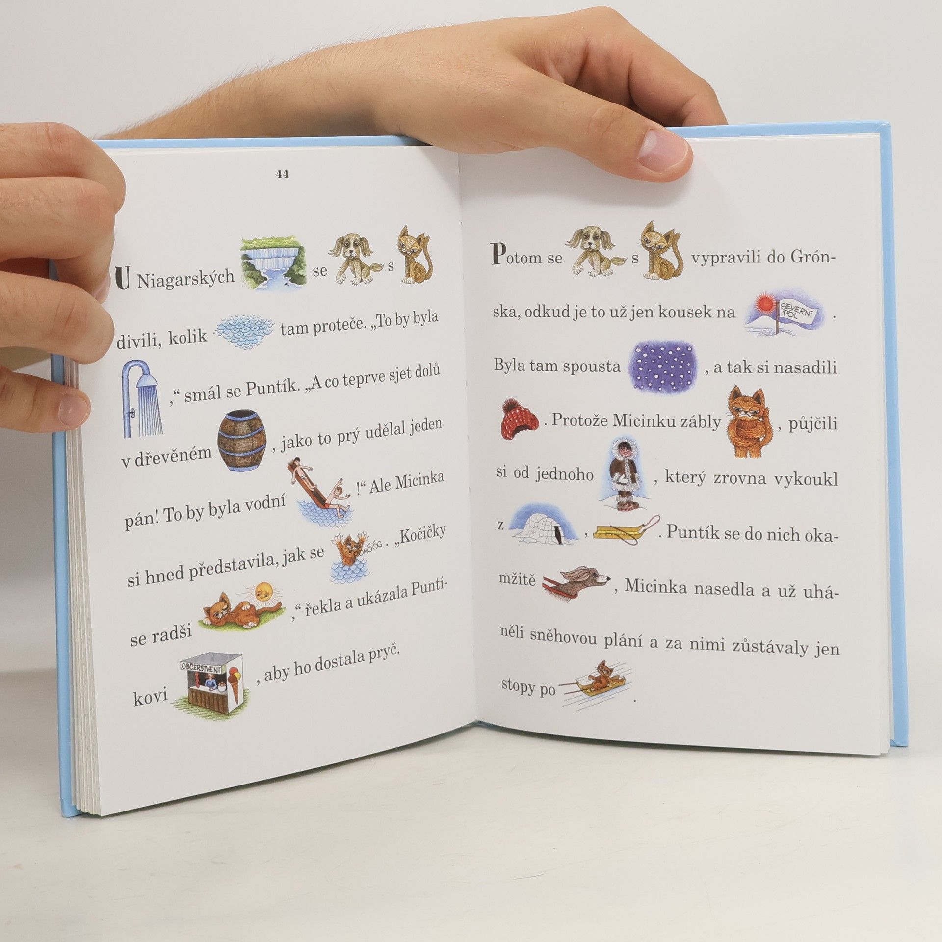 Pejsek a kočička cestují po různých částech zeměkoule a potkávají zajímavá zvířata typická pro daný region. Knížka je psaná formou obrázkového čtení, je tedy vhodná pro začínající čtenáře.