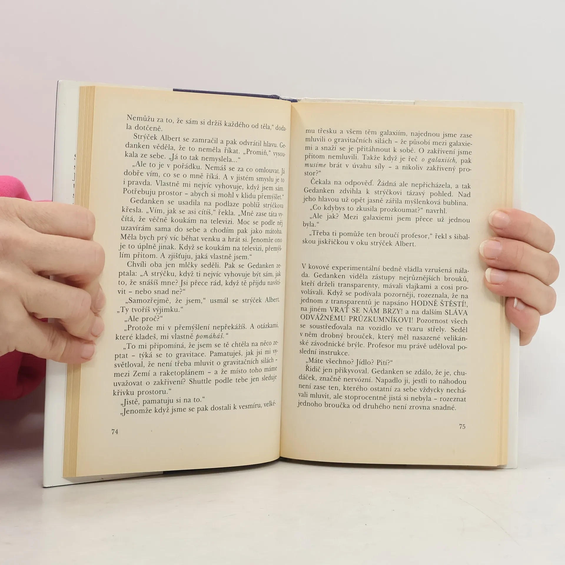 Autor -známý fyzik za vydatné malé Gedanken přibližuje dětem základní představy současné vědy o vesmíru, prostoru a času, Gedanken se vydává jako průzkumník ověřit domněnky svého strýčka Alberta (Einsteina) v myšlenkové raketě.