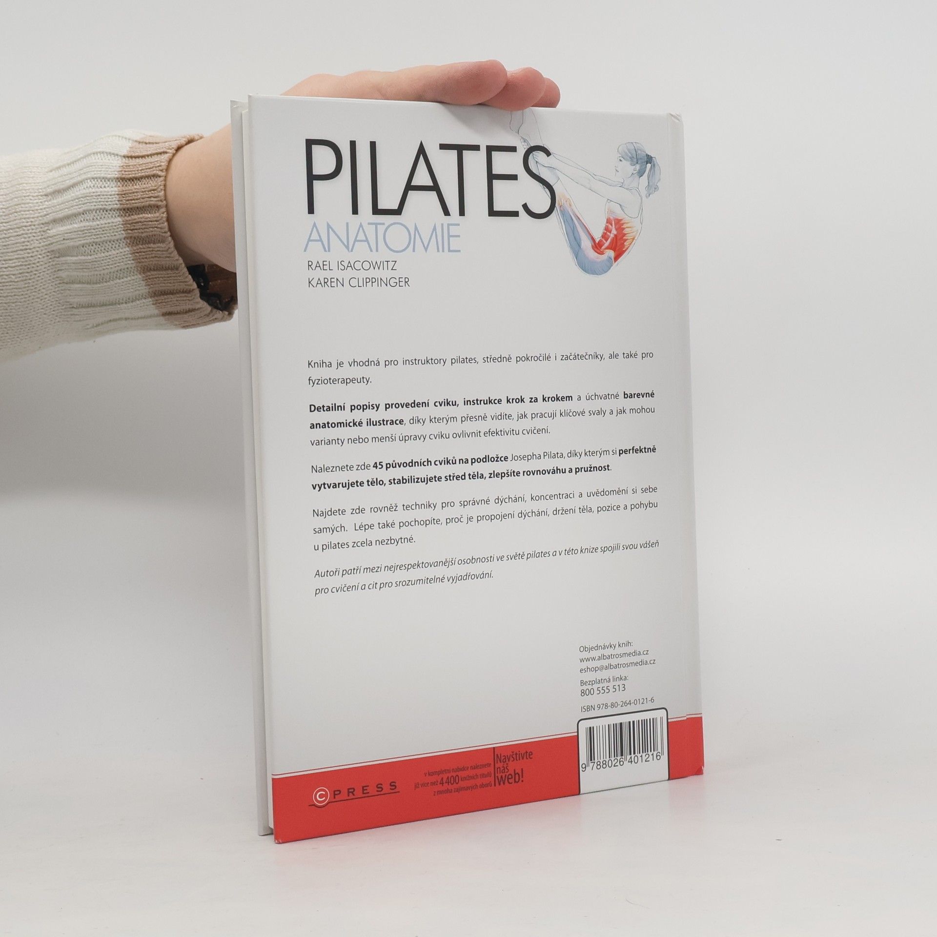 Detailní popisy 45 cviků, instrukce krok za krokem a přehledné barevné anatomické ilustrace, díky kterým přesně vidíte, jak pracují klíčové svaly a jak mohou varianty nebo menší úpravy cviku ovlivnit efektivitu cvičení. Naleznete zde původní cviky na podložce Josepha Pilata, díky kterým si perfektně vytvarujete tělo, stabilizujete střed těla, zlepšíte rovnováhu a flexibilitu. Díky této knize lépe porozumíte, proč je propojení dýchání, držení těla, pozice a pohybu u Pilates zcela nezbytné.