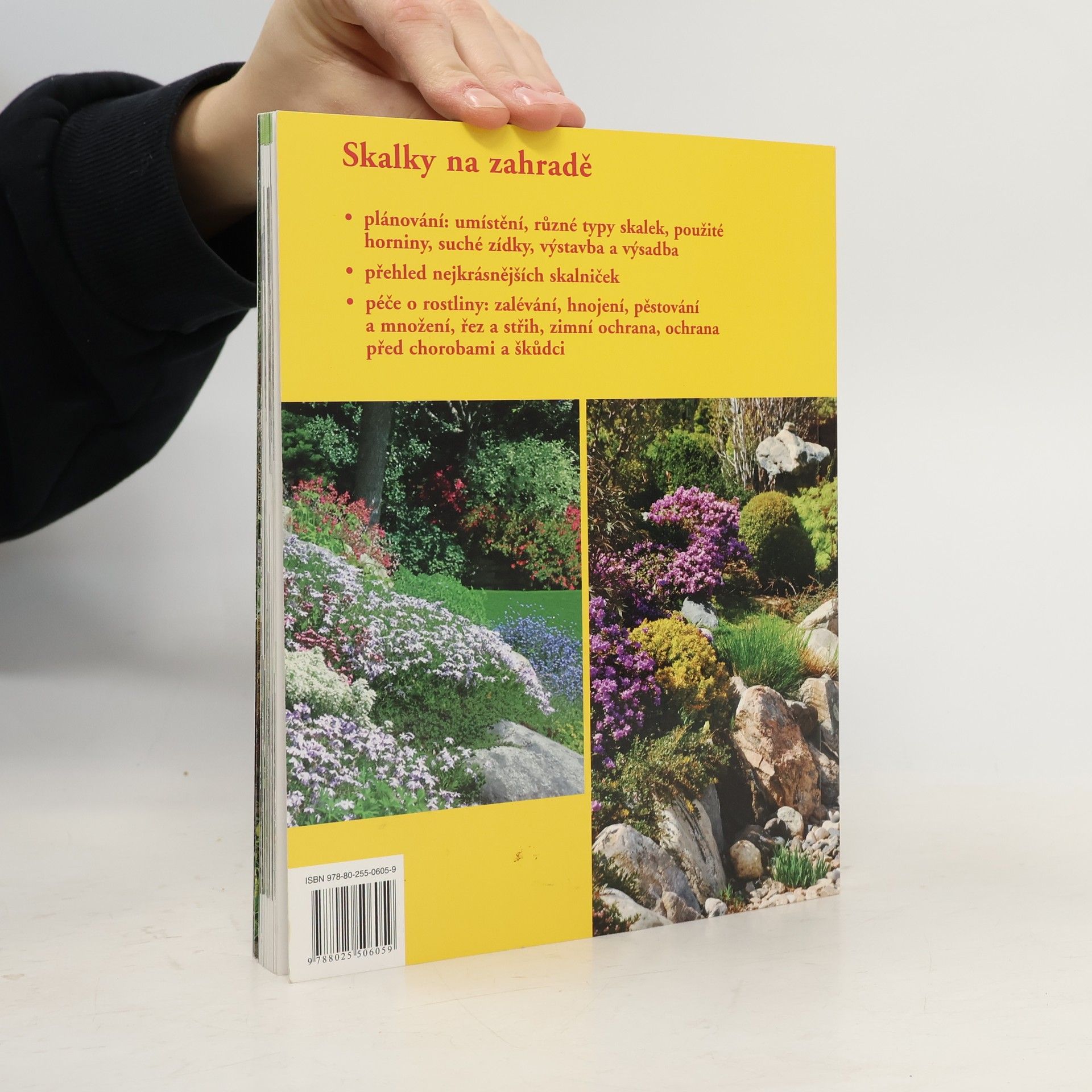 Plánování skalky, různé typy skalek a jejich umístění, použité horniny, suché zídky, výsadba, přehled nejkrásnějších skalniček, péče o rostliny, zalévání, hnojení, množení, řez a střih, ochrana rostlin.