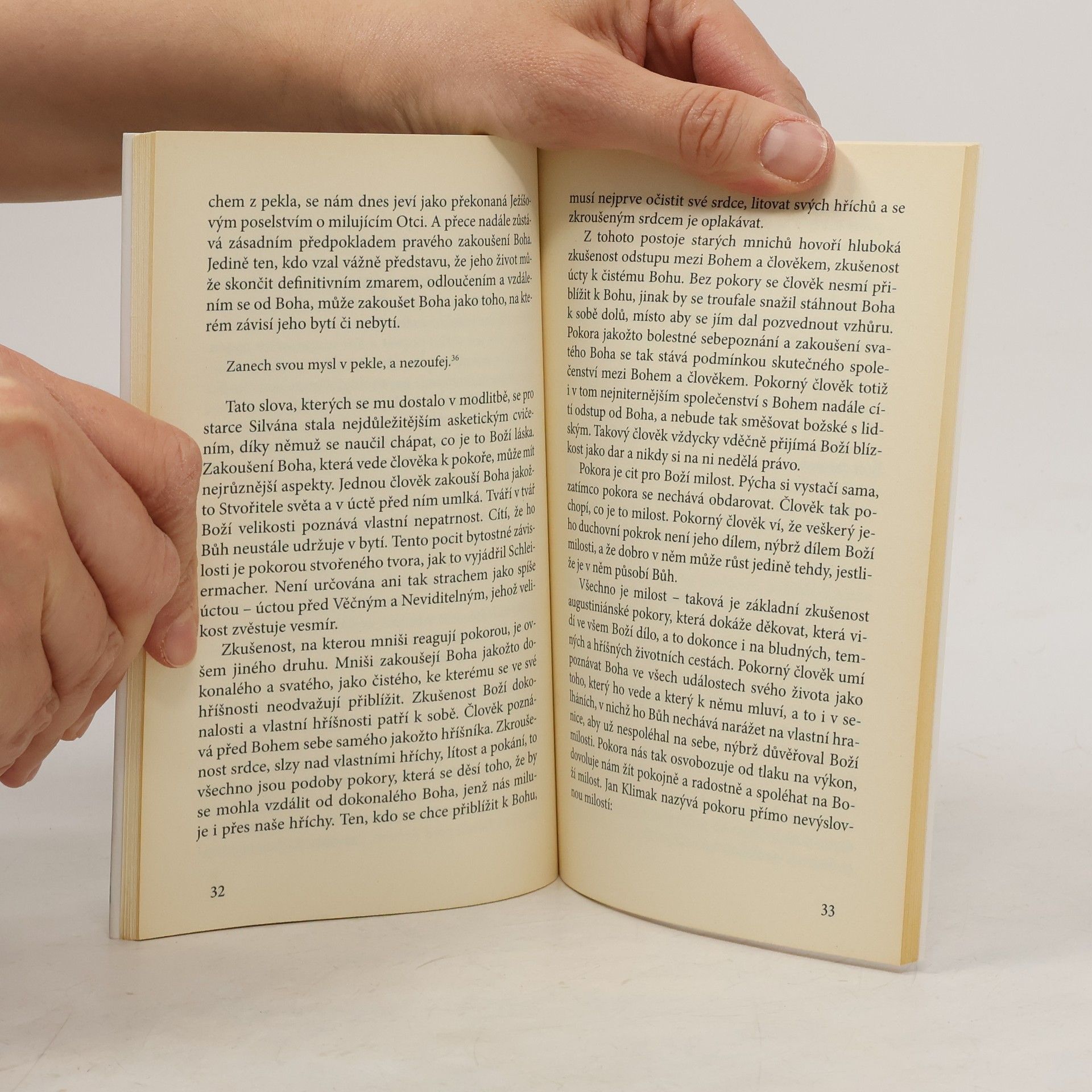 Kniha je jakoby ilustrací slov žalmu „Zkroušeným a pokorným srdcem, Bože, nepohrdneš“. Pokora je nezbytná ctnost pro každého, kdo se chce více přimknout k Bohu a žít v jeho blízkosti. Autor rozkrývá její podstatu, popisuje její účinky i cesty, jež k ní vedou. Hojně přitom čerpá z Bible a moudrosti pouštních otců.