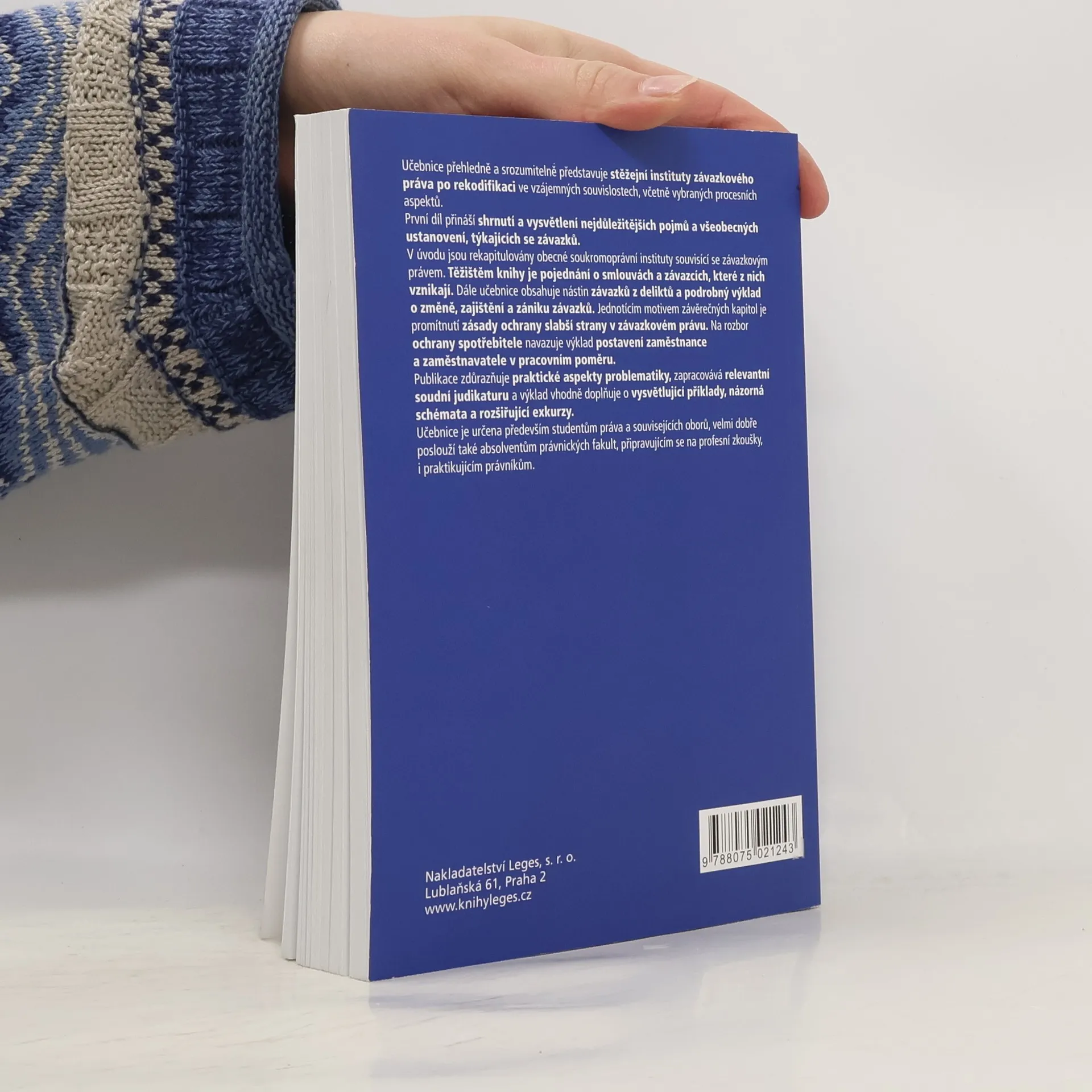 Učebnice přehledně a srozumitelně představuje stěžejní instituty závazkového práva po rekodifikaci ve vzájemných souvislostech, včetně vybraných procesních aspektů. První díl přináší shrnutí a vysvětlení nejdůležitějších pojmů a všeobecných ustanovení, týkajících se závazků. V úvodu jsou rekapitulovány obecné soukromoprávní instituty souvisící se závazkovým právem. Těžištěm knihy je pojednání o smlouvách a závazcích, které z nich vznikají. Dále učebnice obsahuje nástin závazků z deliktů a podrobný výklad o změně, zajištění a zániku závazků. Jednotícím motivem závěrečných kapitol je promítnutí zásady ochrany slabší strany v závazkovém právu. Na rozbor ochrany spotřebitele navazuje výklad postavení zaměstnance a zaměstnavatele v pracovním poměru.