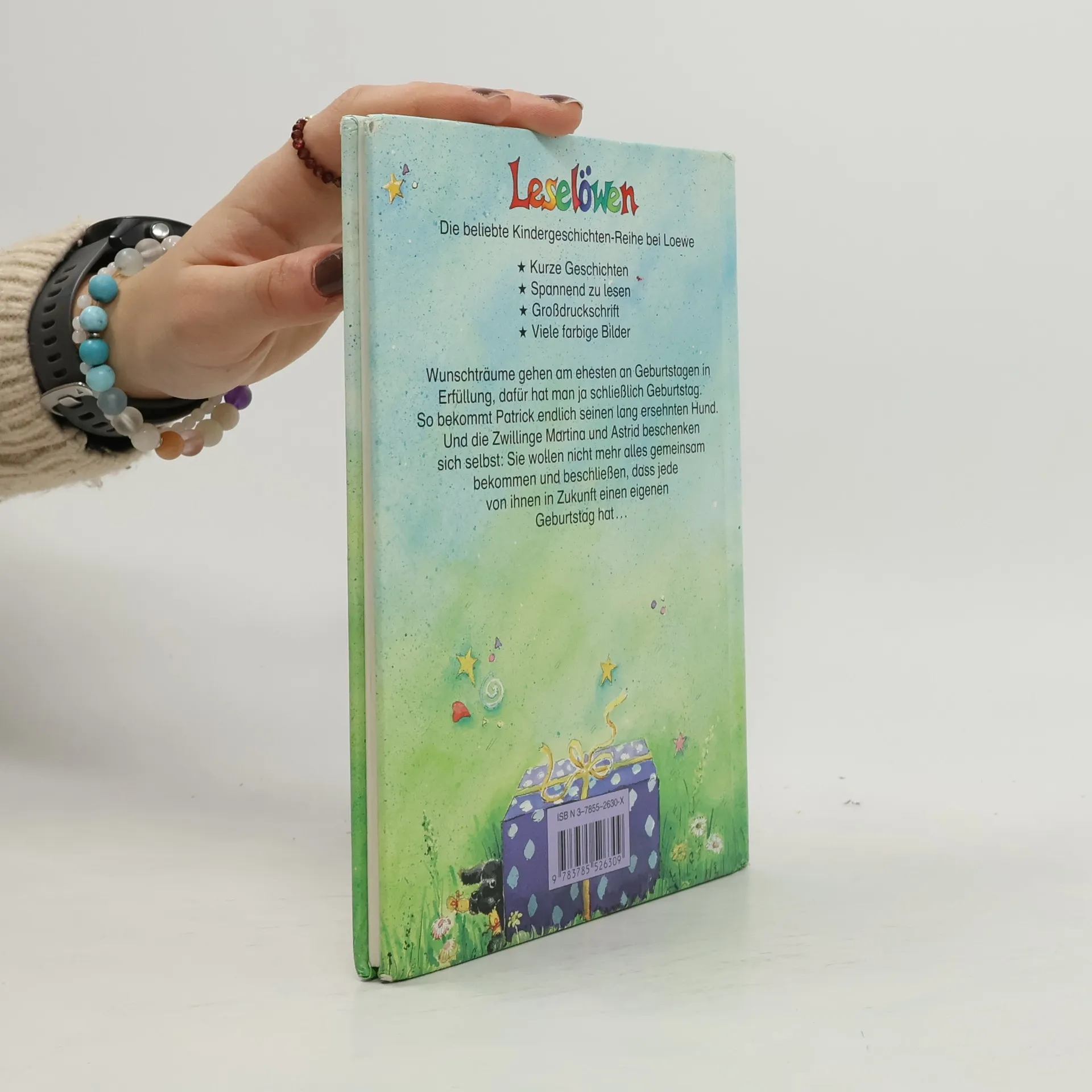 Lesealter ab 8 4. Stufe der Loewe-Leseleiter Kurze Geschichten Großdruckschrift Wunschträume gehen am ehesten an Geburtstagen in Erfüllung, dafür hat man ja schließlich Geburtstag. So bekommt Patrick endlich seinen lang ersehnten Hund. Und die Zwillinge Martina und Astrid beschenken sich selbst: Sie wollen nicht mehr alles gemeinsam bekommen und beschließen, dass jede von ihnen in Zukunft einen eigenen Geburtstag hat.