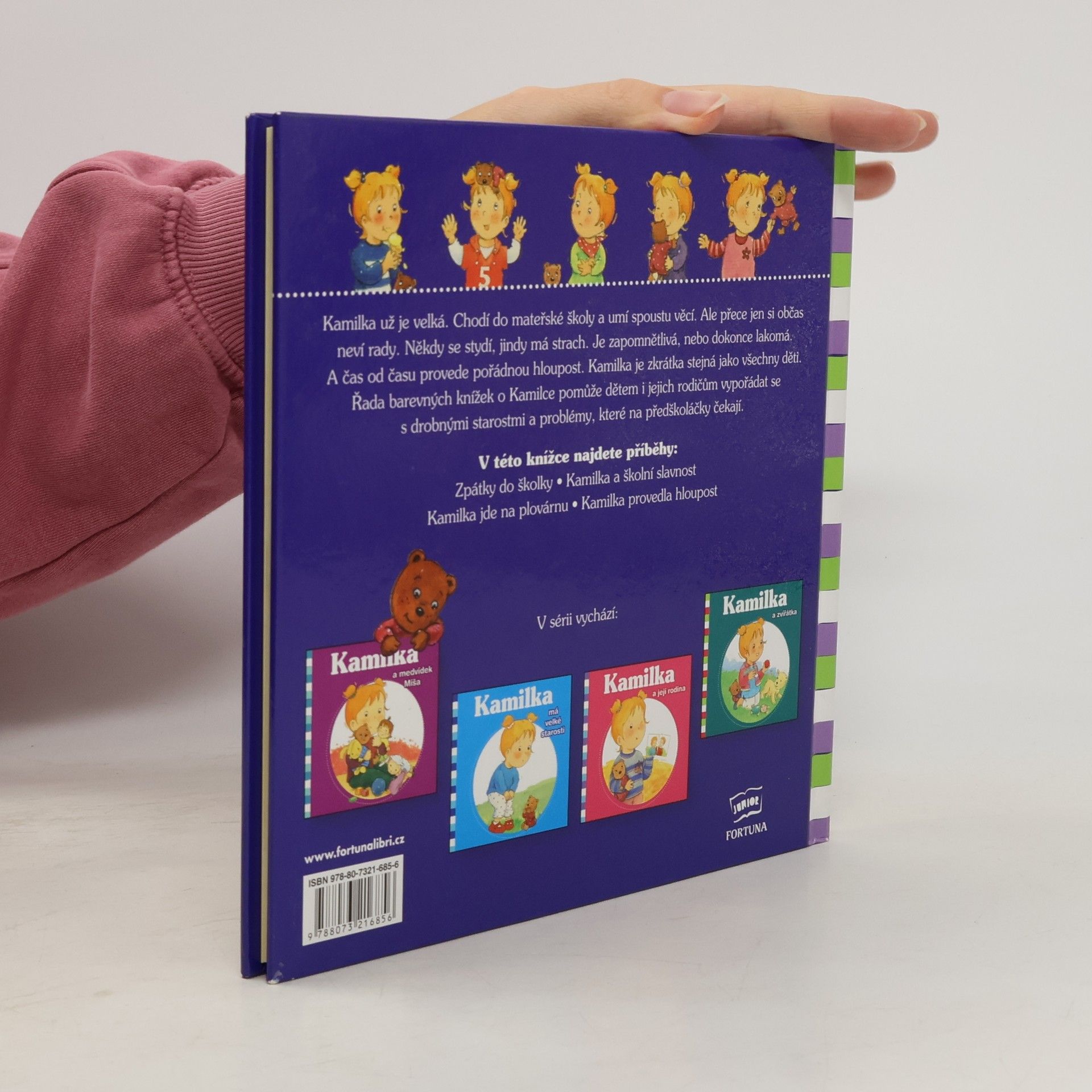 Mělo by vyjít 23.11.2012. Kamilka už je velká. Chodí do mateřské školy a umí spoustu věcí. Ale přece jen si občas neví rady. Někdy se stydí, jindy má strach. Je zapomnětlivá, nebo dokonce lakomá. A čas od času provede pořádnou hloupost. Kamilka je zkrátka stejná jako všechny děti. Řada barevných knížek o Kamilce pomůže dětem i jejich rodičům vypořádat se s drobnými starostmi a problémy, které na předškoláčky čekají. V prvním příběhu Zpátky do školy se Kamilka bojí nového školního roku, mísí se v ní rozporuplné pocity - těší se na své kamarády a zároveň se bojí. Ale nakonec pomáhá překonat strach svému mladšímu kamarádovi, který jde do školy úplně poprvé. Druhé vyprávění je Kamilka a školní slavnost, zde jde hlavně o překonávání studu z vystoupení před rodiči všech spolužáků. Další z příběhů Kamilka jde na plovárnu vyprváví o překonávání strachu z koupání, skluzavek atp. Kamilka provedla hloupost je poučný příběh o tom, že když provedeme něco špatného a mrzí nás to, hezky se omluvíme, maminka s tatínkem se na nás budou zlobit určitě o hodně méně.