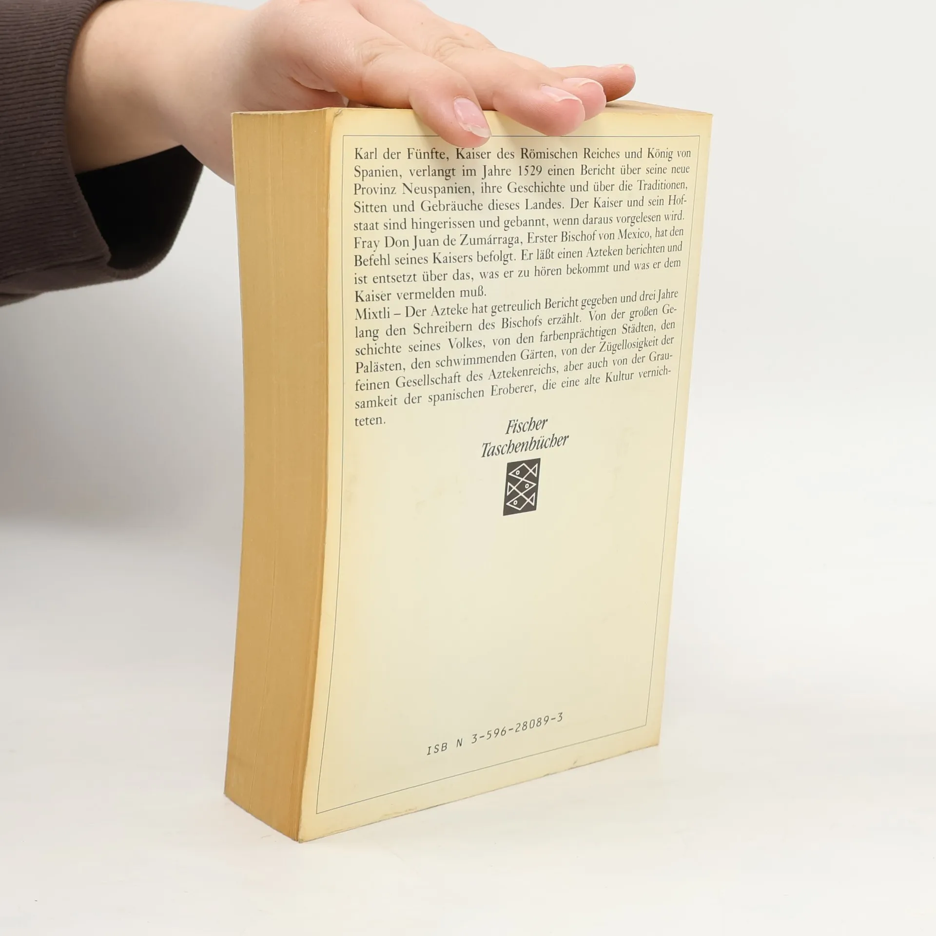 Karl der Fünfte, Kaiser des Römischen Reiches und König von Spanien, verlangt im Jahre 1529 einen Bericht über seine neue Provinz Neuspanien, über Geschichte, Traditionen, Sitten und Gebräuche dieses Landes. Der Kaiser und sein Hofstaat sind hingerissen und gebannt, wenn daraus vorgelesen wird. Fray Don Juan de Zumárraga, Erster Bischof von Mexiko, hat den Befehl seines Kaisers befolgt. Er läßt einen Azteken berichten - und ist entsetzt über das, was er zu hören bekommt und was er dem Kaiser vermelden muß. Mixtli, der Azteke, hat getreulich Bericht gegeben und drei Jahre den Schreibern des Bischofs erzählt. Von der großen Geschichte seines Volkes, von den farbenprächtigen Städten, den Palästen, den schwimmenden Gärten, von der Zügellosigkeit der feinen Gesellschaft des Aztekenreichs, aber auch von der Grausamkeit der spanischen Eroberer, die eine alte Kultur vernichteten.