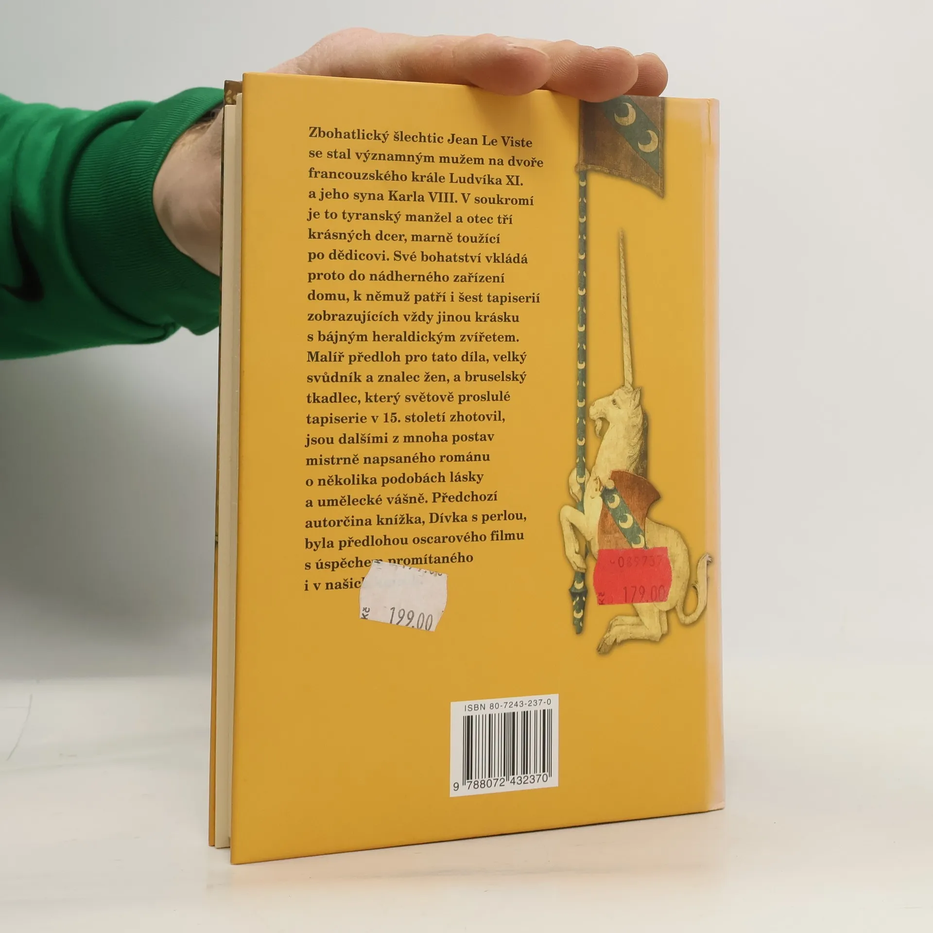 Šlechtic Jean de Viste se stal v 15. stol. významným mužem na dvoře francouzského krále Ludvíka XI. Své bohatství vkládá do nádherného zařízení domu, k němuž patří i šest tapiserií zobrazujících vždy jinou krásku s bájným zvířetem. Malíř předloh pro tato díla, velký svůdník a znalec žen, a bruselský tkadlec těchto světově proslulých gobelínů jsou další z mnoha postav mistrně napsaného románu. Předchozí autorčina knížka, Dívka s perlou, byla předlohou oscarového filmu s úspěchem promítaného i v našich kinech.