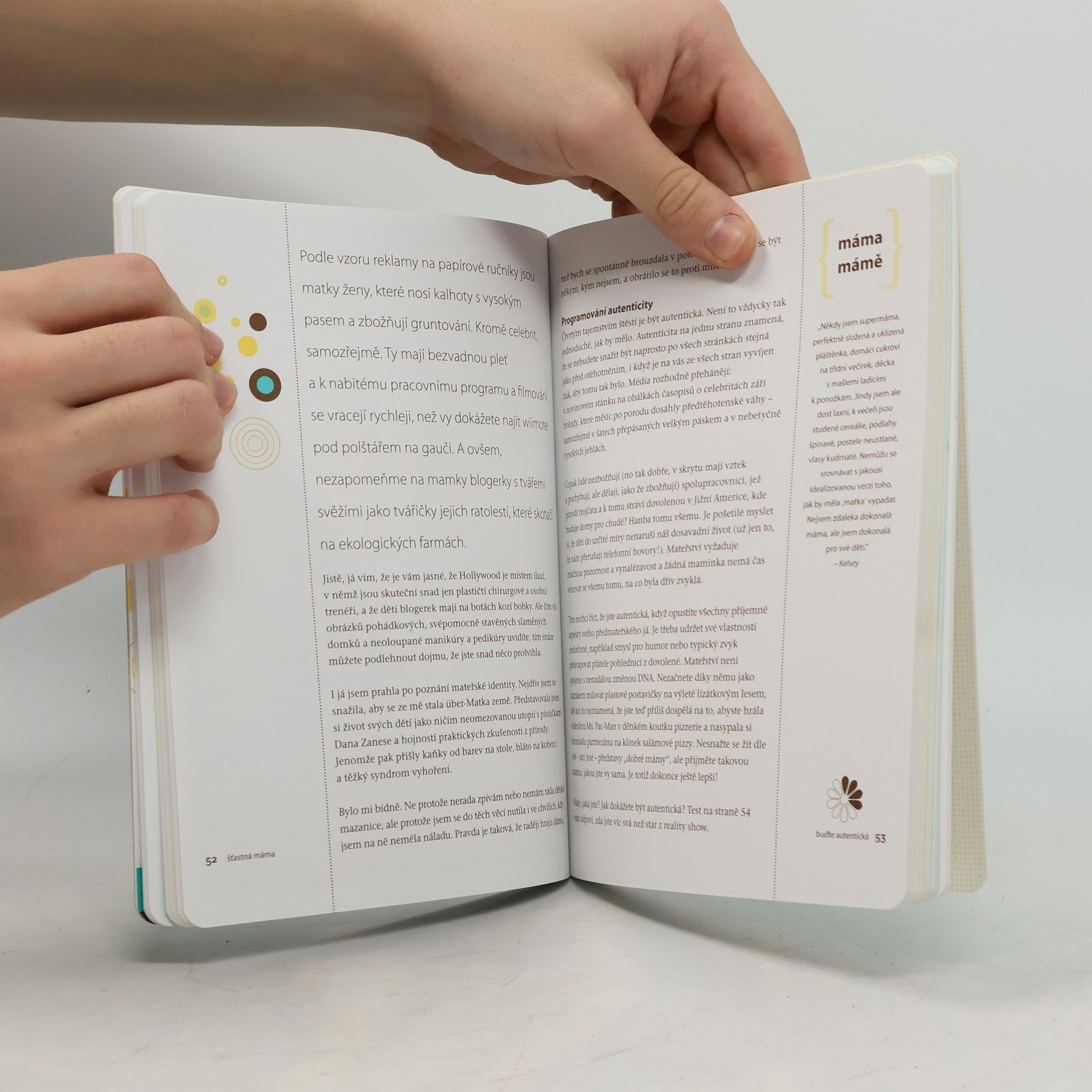Autorka, matka pěti dětí, v knize prozrazuje 10 překvapivě jednoduchých tajemství jak se stát šťastnou mámou. Tento revoluční a vtipný pohled na rodičovství je přínosný jak pro dítě, tak pro rodiče. V knize najdete spoustu užitečných rad, nezbytných ve chvílích, kdy už nevíte kudy kam.