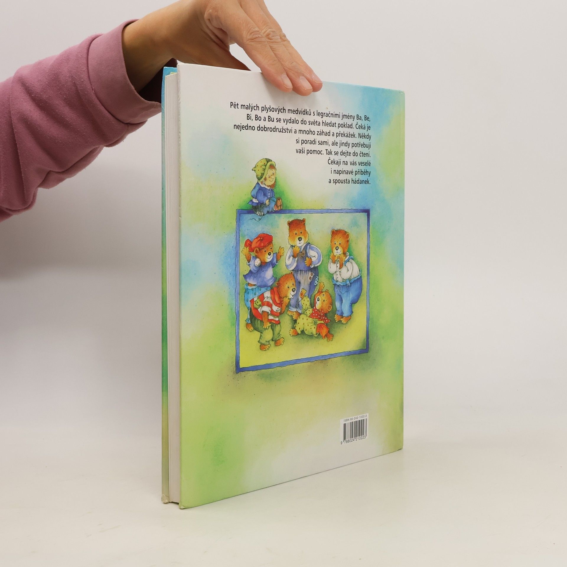 Pět malých plyšových medvídků s legračními jmény Ba, Be, Bi, Bo a Bu se vydalo do světa hledat poklad. Čeká je nejedno dobrodružství a mnoho záhad a překážek. Někdy si poradí sami, ale jindy potřebují vaši pomoc. Tak se dejte do čtení. Čekají vás veselé i napínavé příběhy a spousta hádanek.