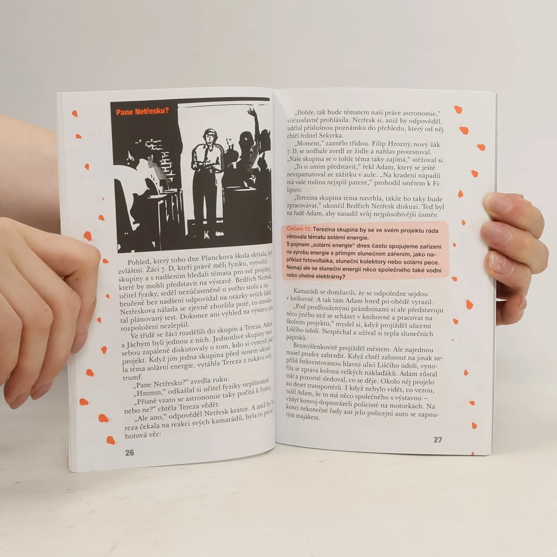 Napínavý dobrodružný detektivní příběh pro žáky vyššího stupně ZŠ, při kterých si zábavným způsobem procvičí vědomosti z fyziky. S novou, napínavou školní detektivkou si můžeš rychle a jednoduše prohloubit, osvěžit a přezkoušet svoje znalosti z fyziky – s nerozlučnými kamarády Adamem, Terezou a Jáchymem bude procvičování fyziky snadnější, plné vtipu a dobrodružství. Naši tři kamarádi pronásledují zlodějskou bandu a přitom jen tak mimochodem řeší fyzikální úkoly…