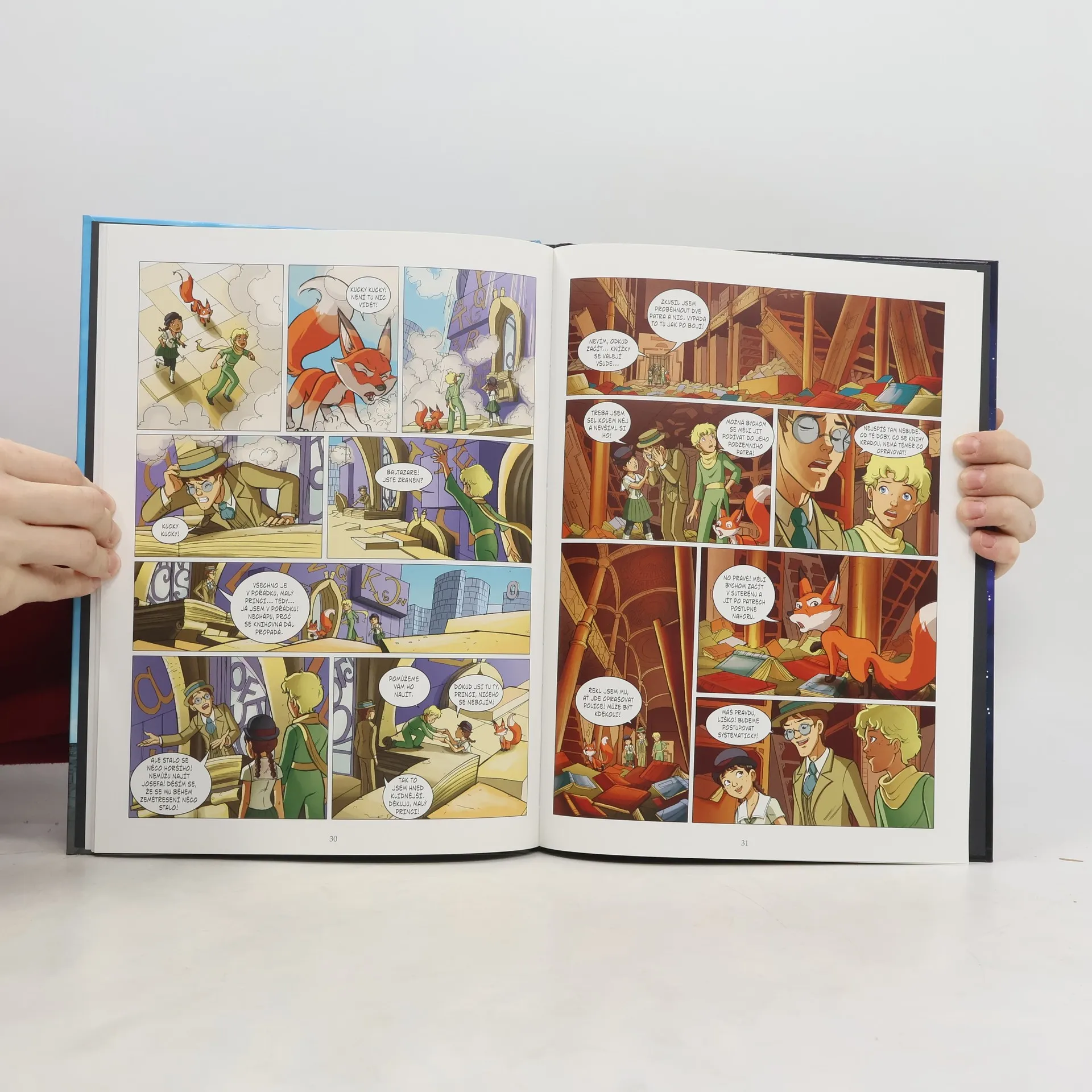 Co je hlavní činností na Planetě knihomolů, napovídá už sám její název. Zdejší obyvatelé jsou vášnivými čtenáři, ba co víc, knihy jsou pro ně životně důležité. Rádi si je vyměňují s neznámými lidmi a tráví večery společným předčítáním. Jenomže od jisté doby řádí na planetě zloděj knih, záhadný harmonikář, který svou melodií doslova vytrhává knihy lidem z ruky. Obří knihovna, kde bylo možné si knihy půjčovat, se navíc pomalu propadá do země a její správce nechce nikoho pustit dovnitř. Obyvatelé planety strádají. Jak se zdá, na Malého prince a Lišku čeká zase perná práce.
