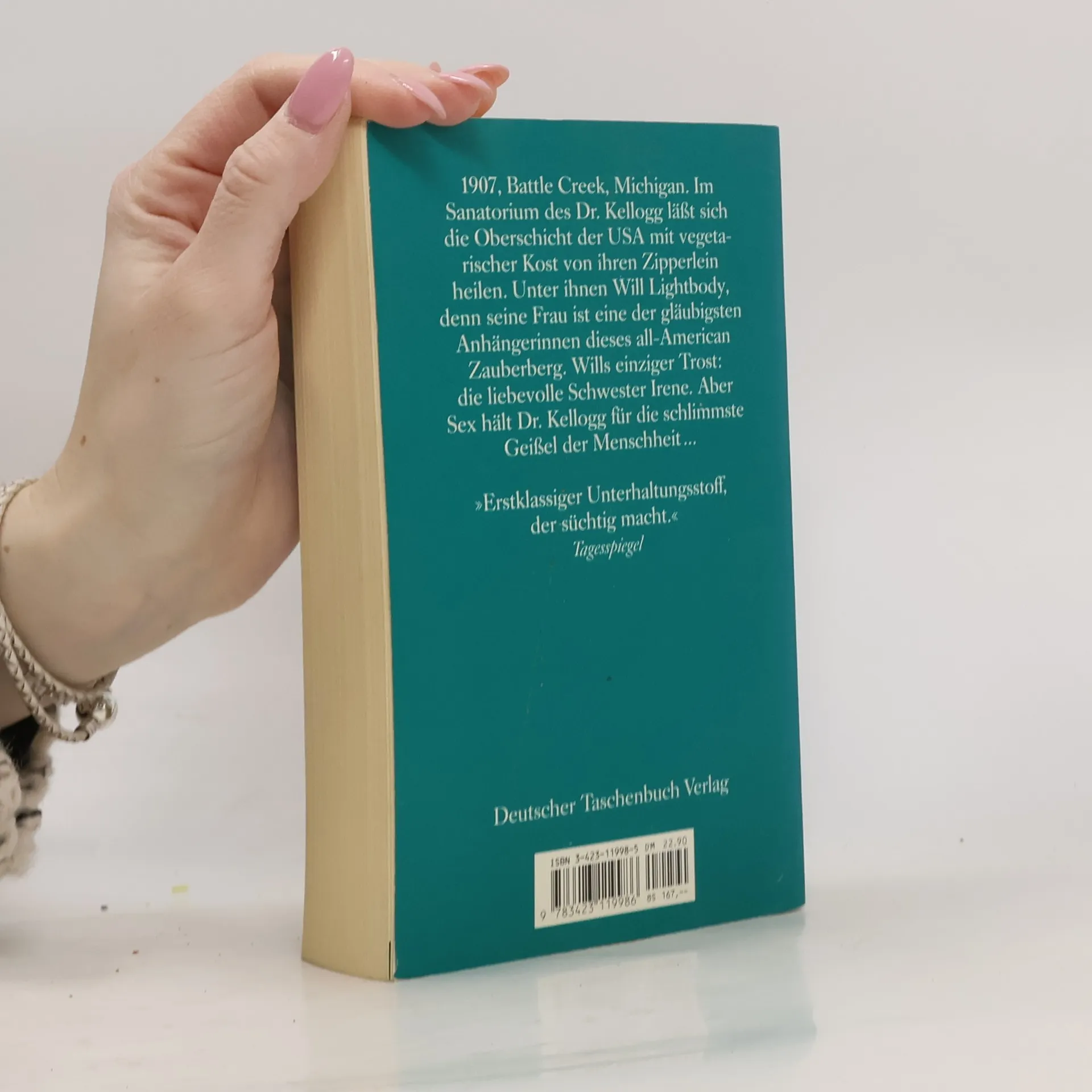 Eine kuriose Gruppe von Gesundheitsfanatikern »Boyle erzählt süffig und souverän, spaßig und beißend. Ihm ist eine unaufhörlich Pirouetten drehende Posse voller Gags und Gemeinheiten geglückt.« Focus Dr. John Harvey Kellogg, Erfinder von Cornflakes, Erdnußbutter und 75 weiteren gastrisch einwandfreien Lebensmitteln, ist angetreten, den uralten Traum der Menschheit vom ewigen Leben zu erfüllen. Zu seinem Tempel der Gesundheit wallfahrtet die gesundheitsbewußte Oberschicht Amerikas. Während eine kuriose Gruppe von Gesundheitsaposteln, Körnchenfressern und Sonnenanbetern sich um das Wohl der Patienten bemüht, versuchen Abenteurer und Scharlatane aller Couleur ebenfalls von dem gesunden Wahn zu profitieren und den Rahm des Geschäfts mit der Magermilch abzuschöpfen …– »Erstklassiger Unterhaltungsstoff, der süchtig macht.« (Der Tagesspiegel)
