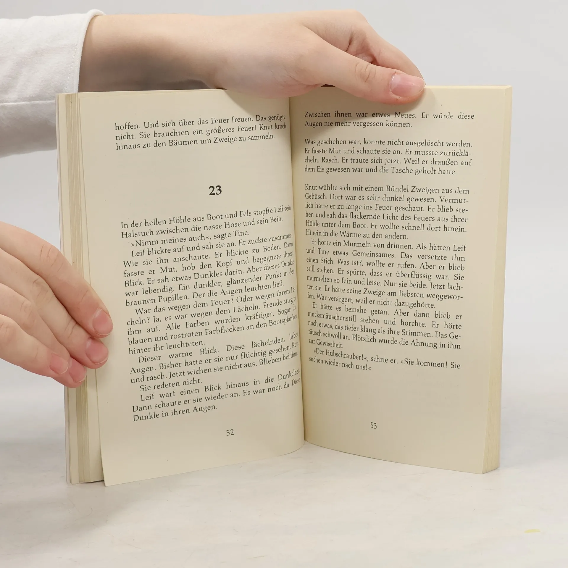 Leif, Knut und Tine wagen sich trotz warmem Frühlingswind auf das Eis im Fjord, um zu fischen. Das Eis bricht auseinander, und die drei Kinder treiben vom Festland weg. Nur ein Wunder oder eine mutige Tat kann die Kinder noch retten. (Quelle: Verzeichnis ZKL).