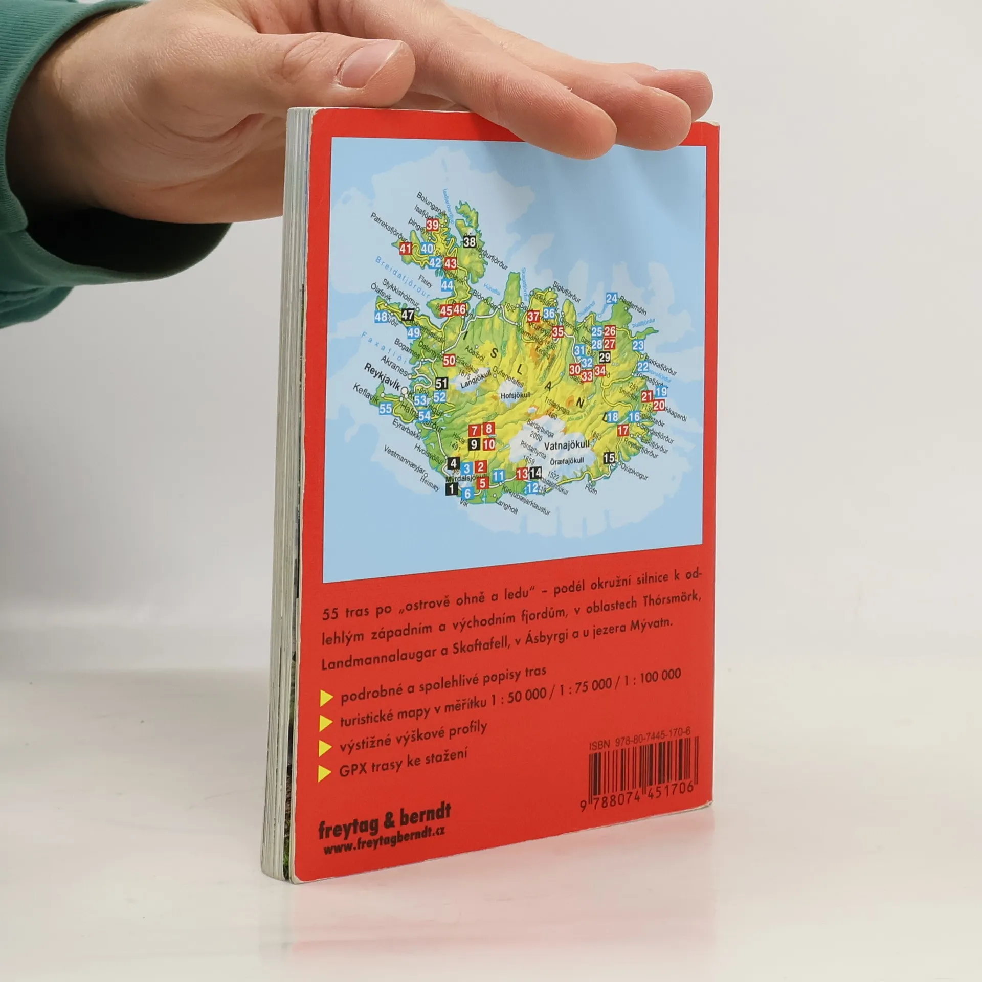 Průvodce představuje 50 vybraných turistických tras ostrovem ohně a ledu. Popis každé trasy poskytuje všechny důležité informace o charakteru cesty, časové náročnosti a zajímavostech. Nechybí podrobná mapka. Publikace rovněž obsahuje všeobecný přehled o islandské pěší turistice, místní přírodě a sportovních možnostech. Čtenář se zde také seznámí s jednotlivými oblastmi ostrova, nalezne důležité kontakty a praktické rady a rejstřík. Atmosféru Islandu dokresluje bohatý obrazový materiál.