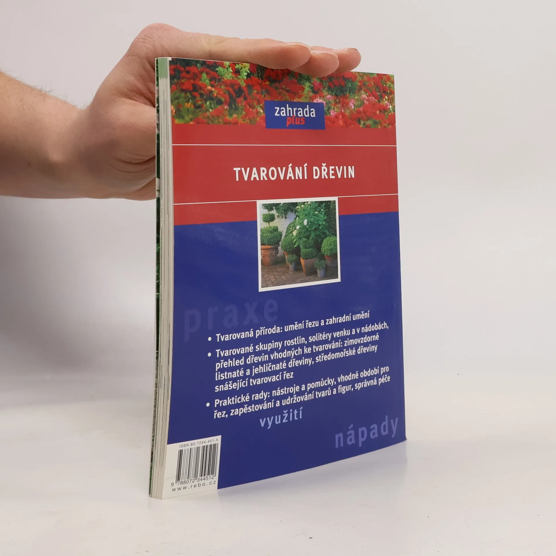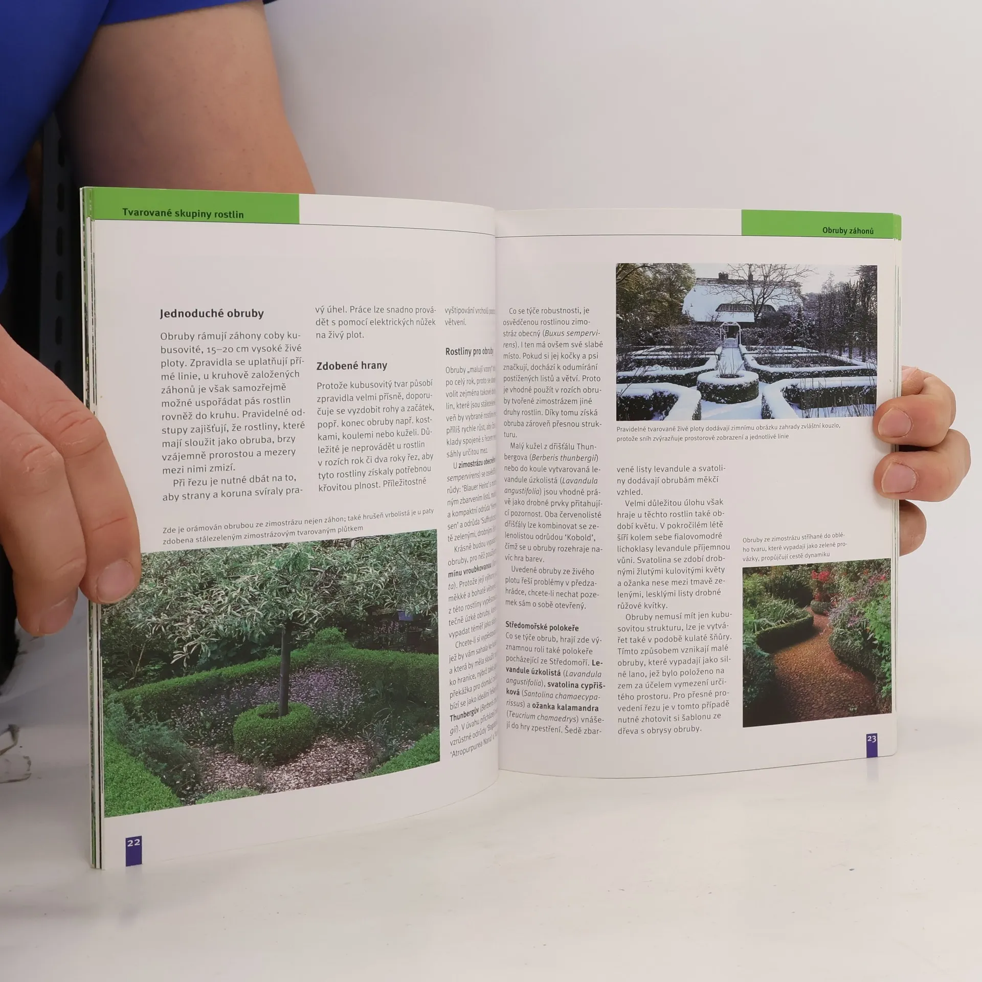 Tvarovaná příroda: umění řezu a zahradní umění - Tvarované skupiny rostlin, solitéry venku a v nádobách, přehled dřevin vhodných ke tvarování: zimovzdorné listnaté a jehličnaté dřeviny, středomořské dřeviny snášející tvarovací řez - Praktické rady: nástroje a pomůcky, vhodné období pro řez, zapěstování a udržování tvarů a figur, správná péče.