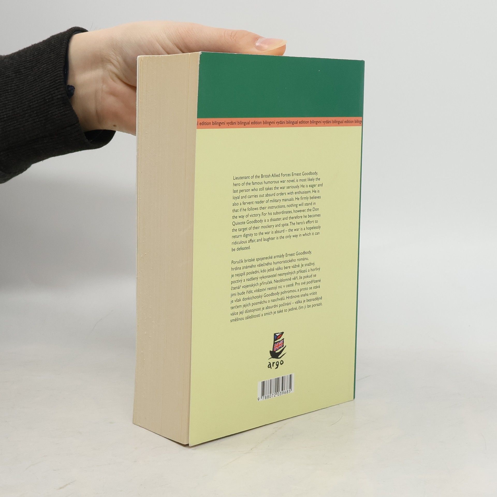 Nesmrtelný válečný román, v němž válku bere vážně snad jen jeho hlavní protagonista, poručík britské spojenecké armády Ernest Goodbody, vychází v anglicko-české verzi. Donkichotský Goodbody se během několikaleté anabáze snaží vrátit válce její důstojnost, ale čtenář záhy pochopí, že jde o absurdní počínání – válka je beznadějně směšnou záležitostí a smích je také to jediné, čím ji lze porazit.